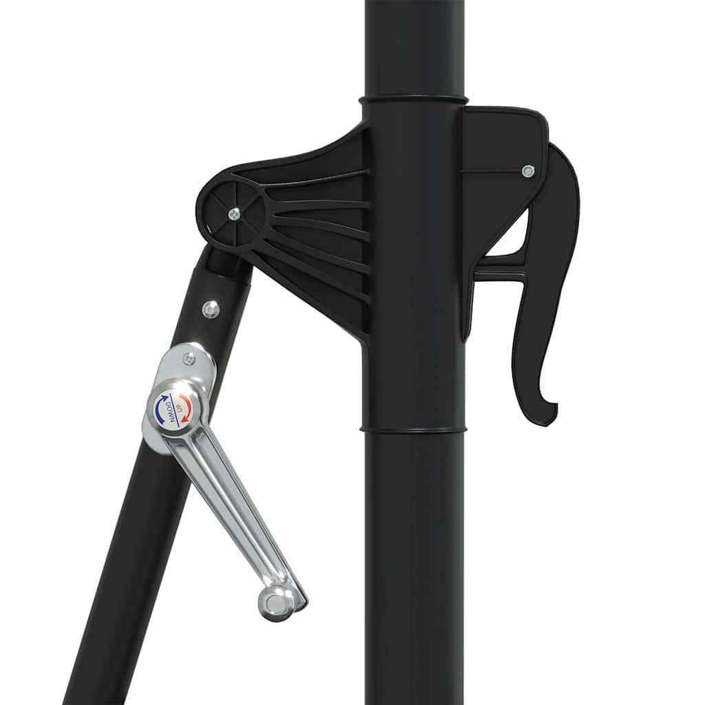 Fabricată din poliester cu protecție UV și anti-decolorare, cupola umbrelei de soare vă oferă protecție optimă împotriva soarelui și este ușor de curățat. Designul exclusiv al acestei umbrele de soare vă permite să înclinați umbrela pentru a bloca soarele, pe măsură ce se îndreaptă spre orizont. Stâlpul metalic robust, împreună cu cele 8 spițe durabile, asigură stabilitate și durabilitate umbrelei de soare. Umbrela de grădină poate fi deschisă și închisă cu ușurință datorită mecanismului cu manivelă. Produsul este ușor de asamblat. Pachetul de livrare include și accesoriile pentru montaj.