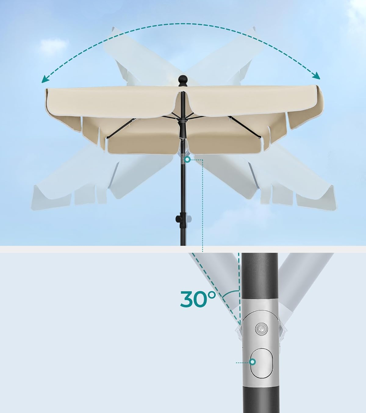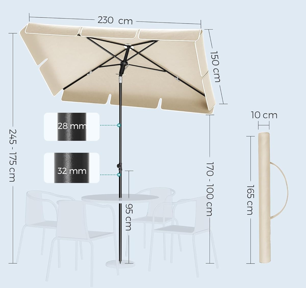 Umbrelă de terasă și grădină SONGMICS, reglabilă, UPF 50+, 230x150 cm, bej