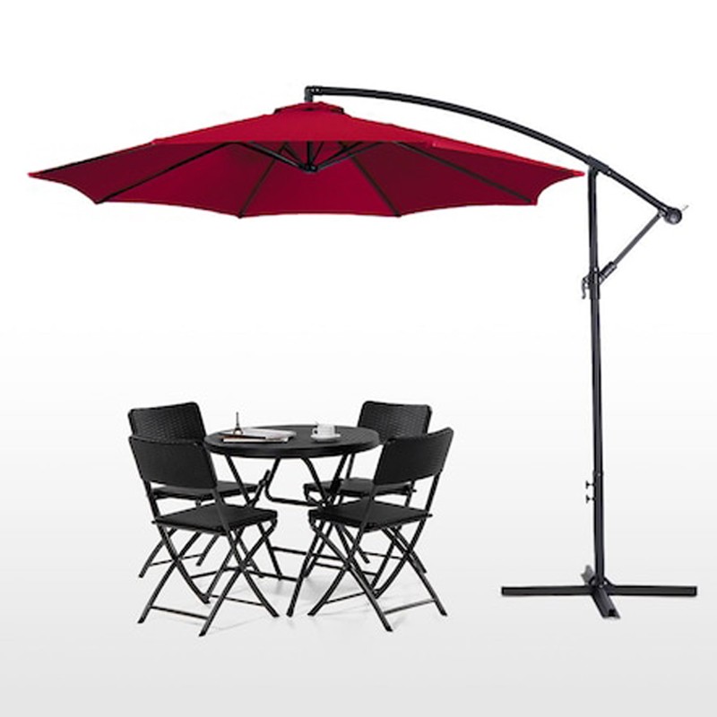 Umbrela suspendata de gradina este alegerea ideala pentru a va proteja de razele daunatoare ale soarelui, fiind solutia potrivita pentru gradina, terasa, curte sau pentru proprietarii de plaje. Datorita diametrului de 300 cm, umbrela permite depozitarea mai multor persoane simultan.