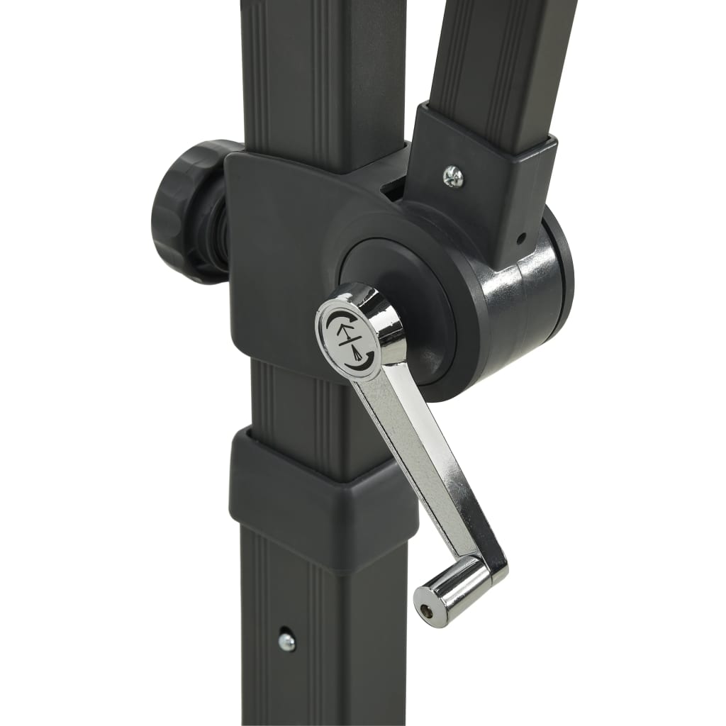Fabricată din poliester cu protecție UV și anti-decolorare, copertina umbrelei de soare vă oferă o protecție optimă împotriva soarelui și este ușor de curățat. Are o bază solidă încrucișată, pentru un plus de stabilitate. Designul exclusiv al acestei umbrele de soare vă permite să înclinați și să rotiți umbrela la 360 de grade pentru a bloca soarele. Stâlpul robust din aluminiu, împreună cu cele 8 spițe, asigură stabilitate și durabilitate umbrelei de soare. Umbrela de grădină poate fi deschisă și închisă cu ușurință datorită mecanismului cu manivelă. În plus, modelul de copertină dublă facilitează ventilația.