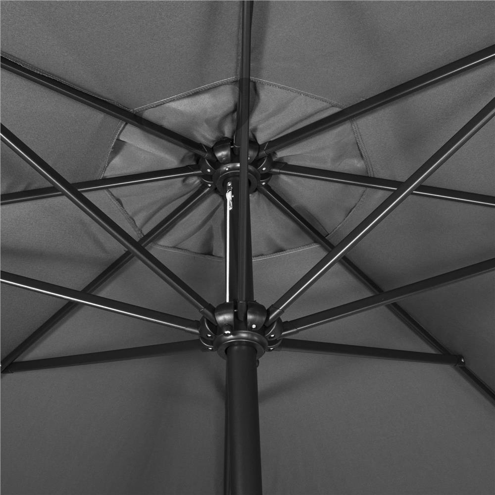 PARAMETRI: Material: otel, poliester Greutate material: 160g/m2 Culoare baldachin: gri inchis Constructie: 8 panouri Mecanism de desfacere: manivela Lungimea umbrelei: 400 Latimea materialului umbrelei: 410 Culoarea cadrului: negru, vopsit cu pulbere Dimensiuni: Inaltime totala: 252 cm Lungimea umbrelei: 400 Latimea materialului umbrelei: 410 Diametru orificiu de ventilatie: 45 cm Diametrul cantonului deasupra orificiului de ventilatie: aprox. 59 cm Latimea unui panou la marginea baldachinului: 152 cm Lungime volan: 18 cm Latimea volanelor: 150 cm (masurata prin centru) Latimea baldachinului inchis (masurat in partea de jos): aprox. 60 cm Lungime baldachin inchis: 215 cm Diametru tub catarg: 48 mm Grosimea metalului in tubul catargului: 1,2 mm Profil tub baldachin: 14x23 mm Lungime manivela: 12 cm Lungimea manerului la manivela: 5 cm Umbrela mare de gradina este o parte indispensabila a peisajului de gradina, de care este greu sa te poti lipsi vara. Este o solutie ideala si indispensabila pentru oricine cauta un moment de ragaz de razele soarelui. Informatii suplimentare: Pliere si desfasurare usoara si rapida Material impermeabil Asamblare si dezasamblare simpla si usoara Un baldachin generos care va umbri o suprafata considerabila Baldachinul nu poate fi ajustat in inclinare. Baza umbrelei nu este inclusa. In cazul rafalelor puternice de vant, se recomanda ca umbrela sa fie pliata datorita dimensiunii considerabile a baldachinului si a sigurantei asociate cu aceasta. Raspunsul la nevoile dumneavoastra Un acoperis mare, impresionant, care va umbri un spatiu considerabil Materiale de calitate superioara Detalii rafinate Extrem de simplu si intuitiv de utilizat Cele mai la moda culori, discrete. Baldachin foarte mare pentru a se potrivi chiar si seturilor mari de mobilier de gradina Rezistent la apa Gaura de ventilatie in partea superioara a baldachinului Mecanism de manivela ultraconfortabil si robust Asamblare necomplicata Instructiuni clare Diametrul mare al umbrelei, de pana la 400 cm, va va permite sa umbriti si sa protejati o suprafata mare din terasa, balcon sau gradina de soare sau de ploaia nedorita, oferindu-va posibilitatea de a face gratare in voie, de a va juca cu copiii, de a gazdui un numar mare de persoane la o petrecere sau de a acoperi o piscina mare sau o groapa de nisip. Este, de asemenea, ideal pentru afacerile in care clientii se afla si ei afara. Intreaga structura si copertina, formata din 8 spite, a fost pastrata foarte simpla si necomplicata. Starea la adapost de soare – fie ca este vorba de o umbrela sau de o panza – poate fi asociata cu un plus de caldura si cu lipsa de circulatie in zilele fara vant. Umbrela noastra a fost dotata cu o ventilatie in partea superioara a baldachinului, ceea ce va creste cu siguranta confortul de utilizare, mai ales daca cei mici se joaca sub umbrela.