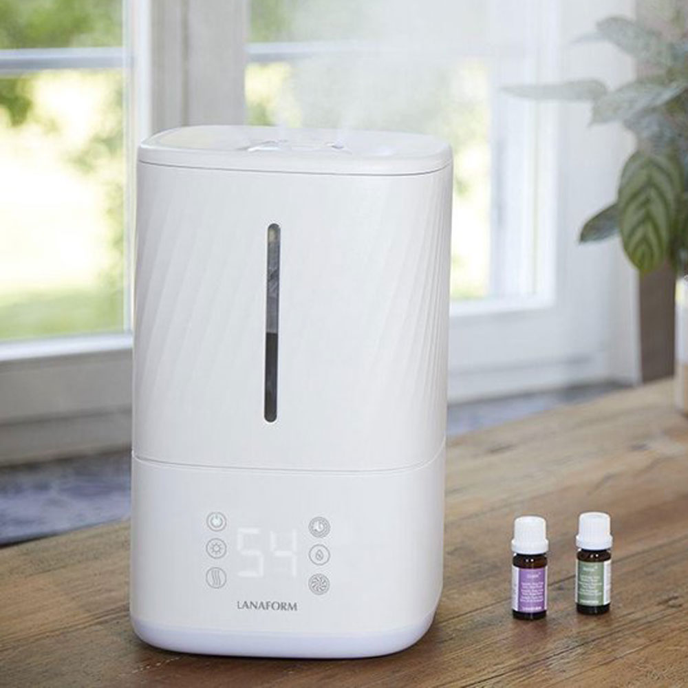 - Umidificatorul Napo Lanaform este echipat cu o tava destinata primirii uleiurilor esentiale la alegere. Se toarna cateva picaturi pe tava: acestea sunt astfel difuzate prin ventilatie in aerul ambiant, in acelasi timp in care devine umed. Combinati astfel beneficiile aromoterapiei si cele ale umidificarii, pentru a obtine o calitate optima a aerului.