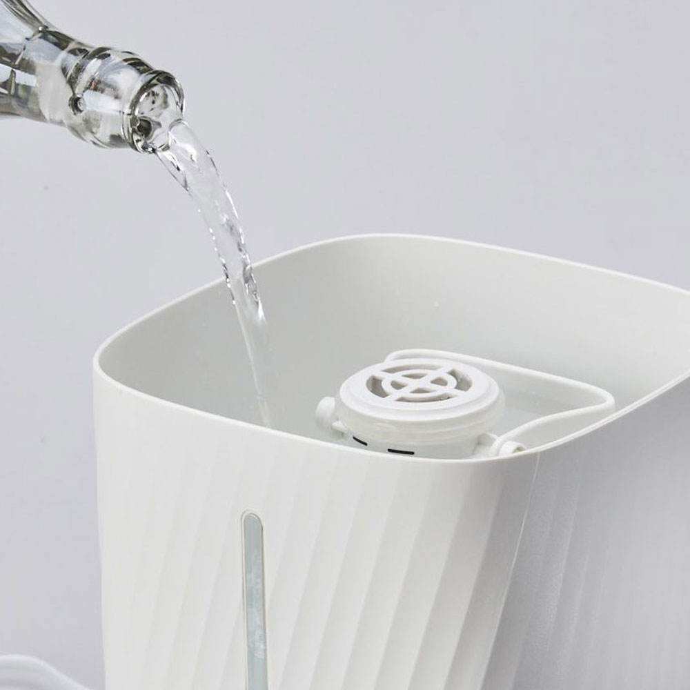 - Rezervorul este, de asemenea, prevazut cu un maner care face manipularea si transportul sau destul de practice. In plus, cele doua crestaturi situate la baza umidificatorului va permit sa il mutati cu baza in siguranta completa, in functie de nevoile si dorintele dumneavoastra.