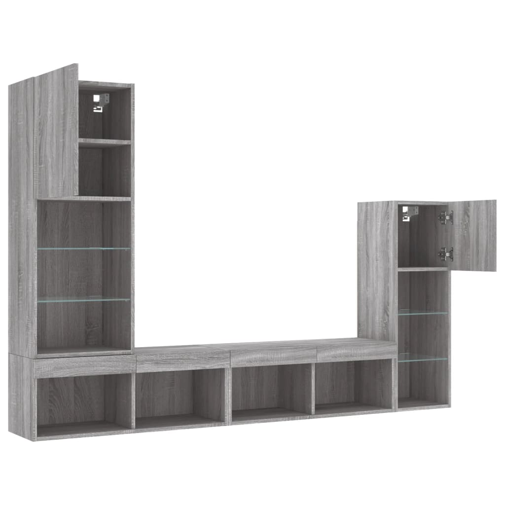 Unități de perete TV cu LED-uri, 4 piese, gri sonoma, lemn GartenMobel Dekor