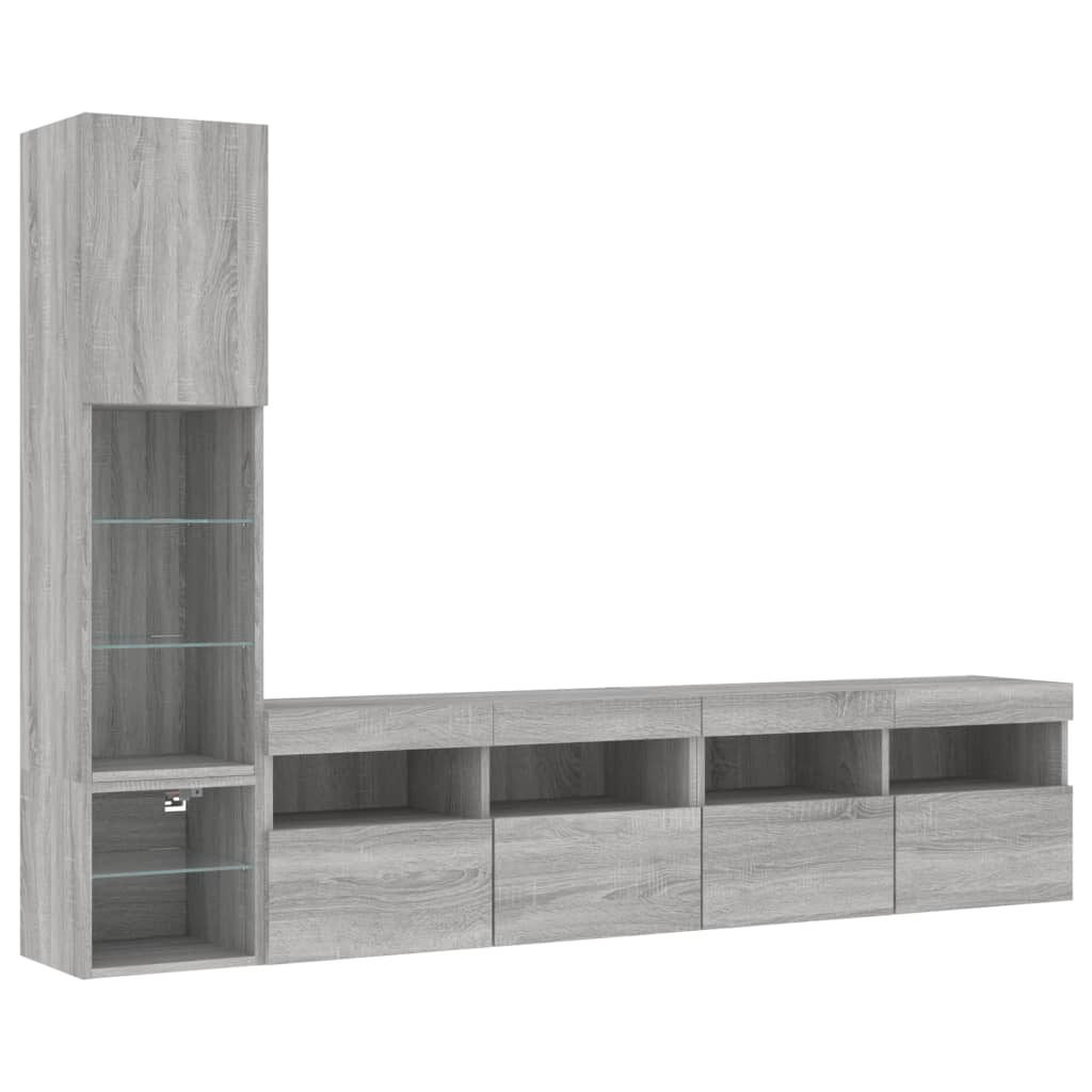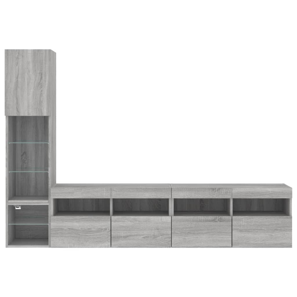 Unități de perete TV cu LED-uri, 4 piese, gri sonoma, lemn GartenMobel Dekor