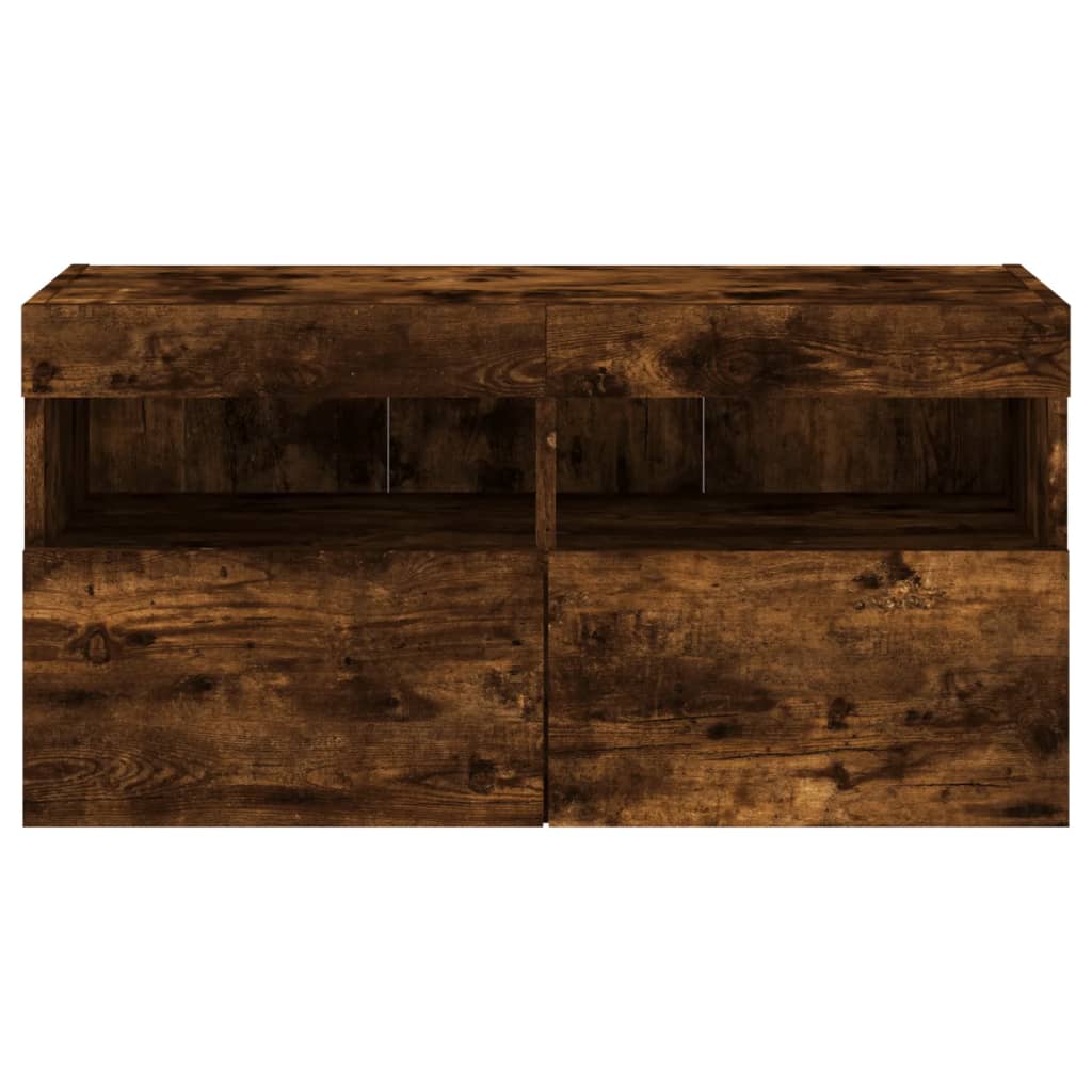 Unități de perete TV cu LED-uri, 4 piese, stejar fumuriu, lemn GartenMobel Dekor