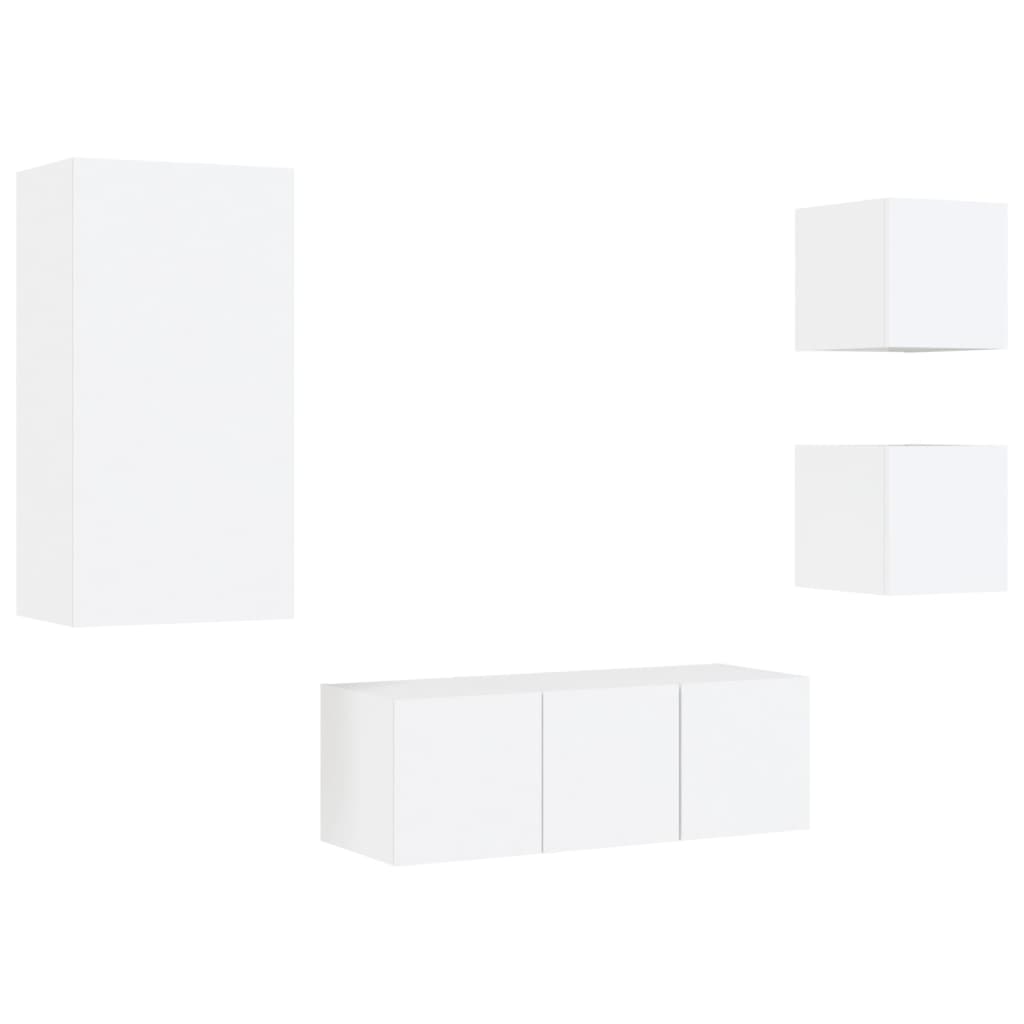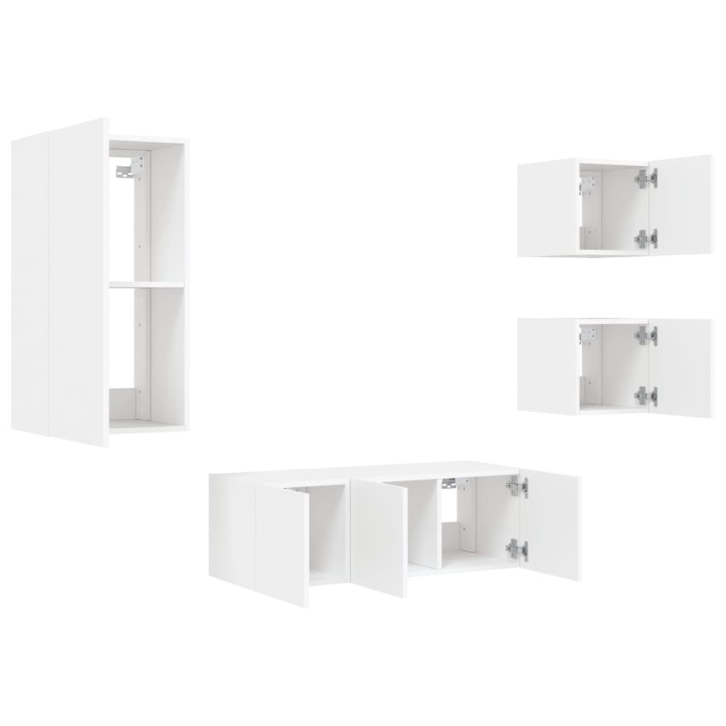Unități de perete TV cu LED-uri, 5 piese, alb, lemn prelucrat GartenMobel Dekor
