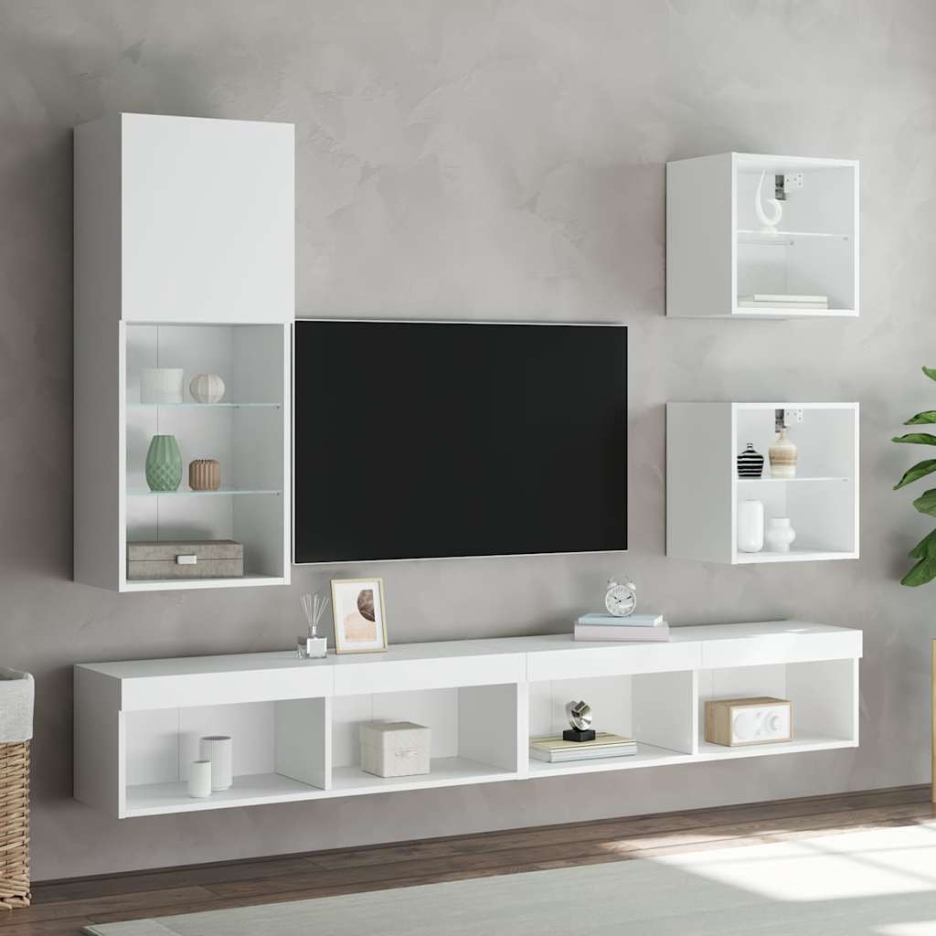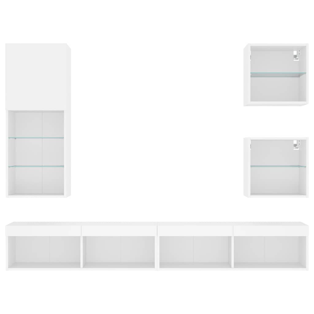 Unități de perete TV cu LED-uri, 5 piese, alb, lemn prelucrat GartenMobel Dekor