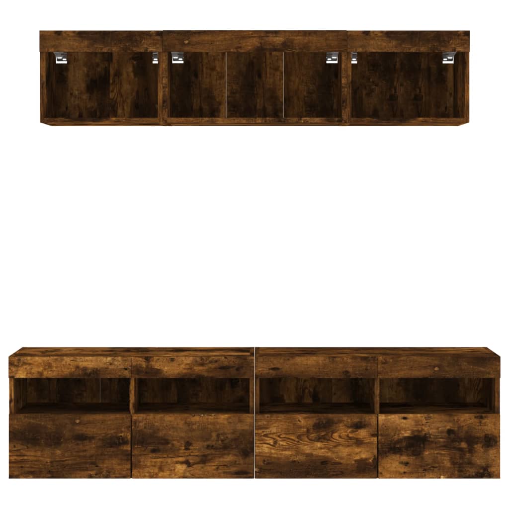 Unități de perete TV cu LED-uri, 5 piese, stejar fumuriu, lemn GartenMobel Dekor