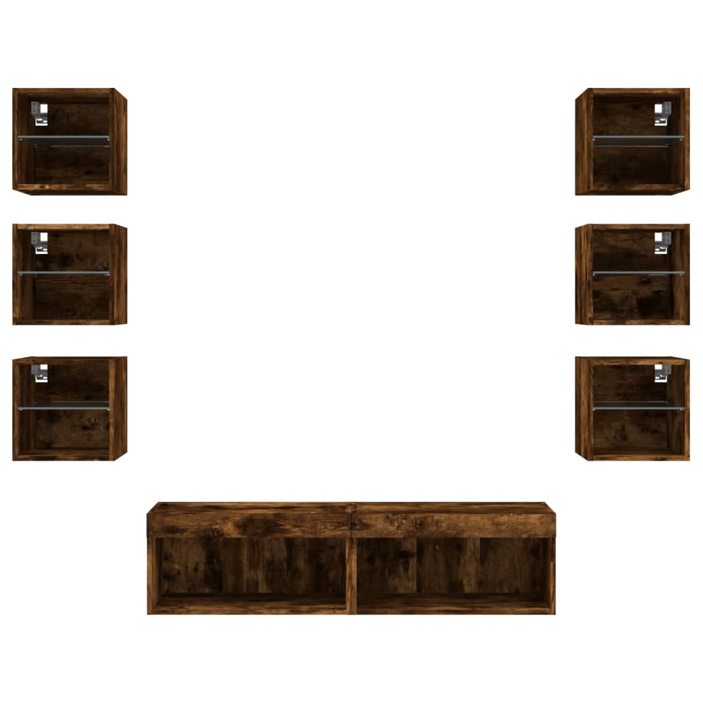 Unități de perete TV cu LED-uri, 8 piese, stejar fumuriu, lemn GartenMobel Dekor