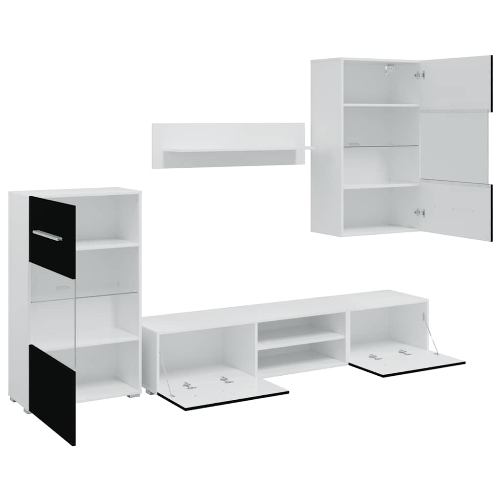 Unități TV de 5 piese cu iluminare LED lemn prelucrat negru mat GartenMobel Dekor