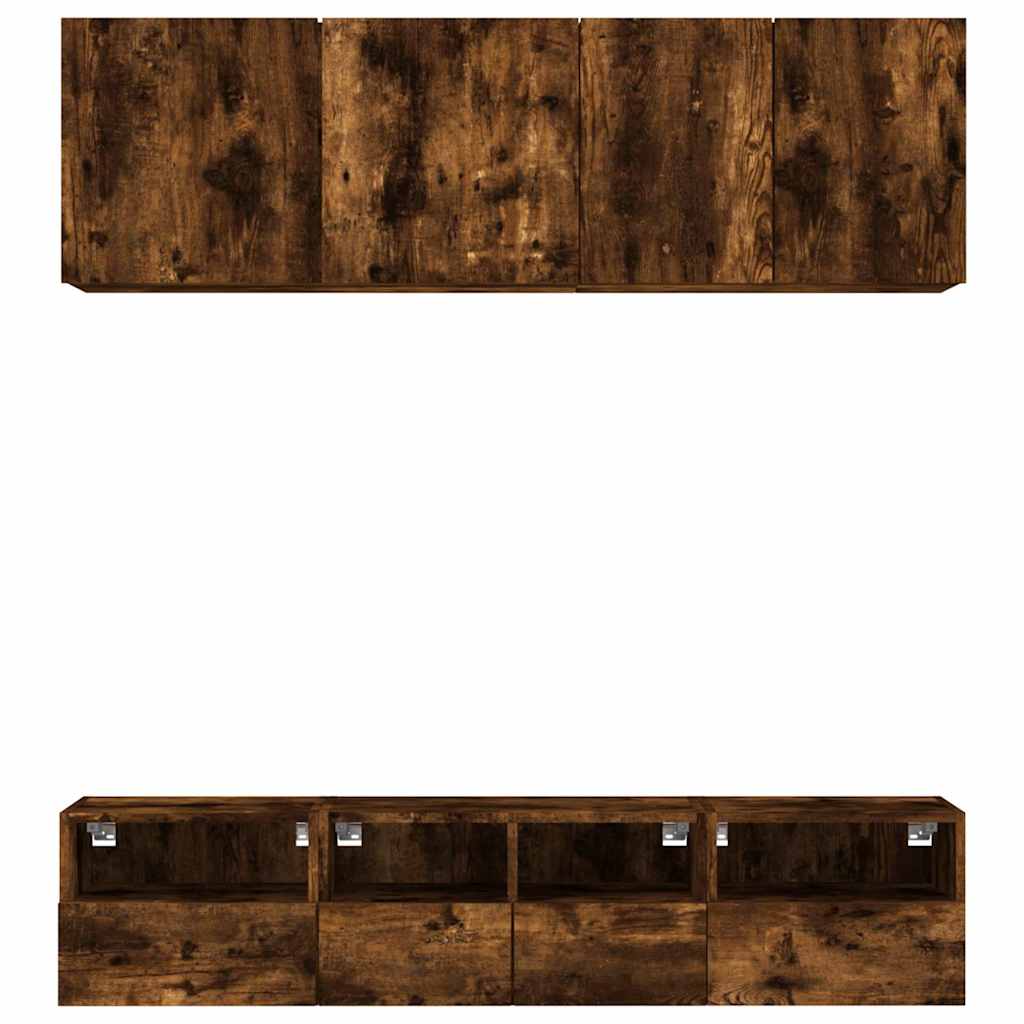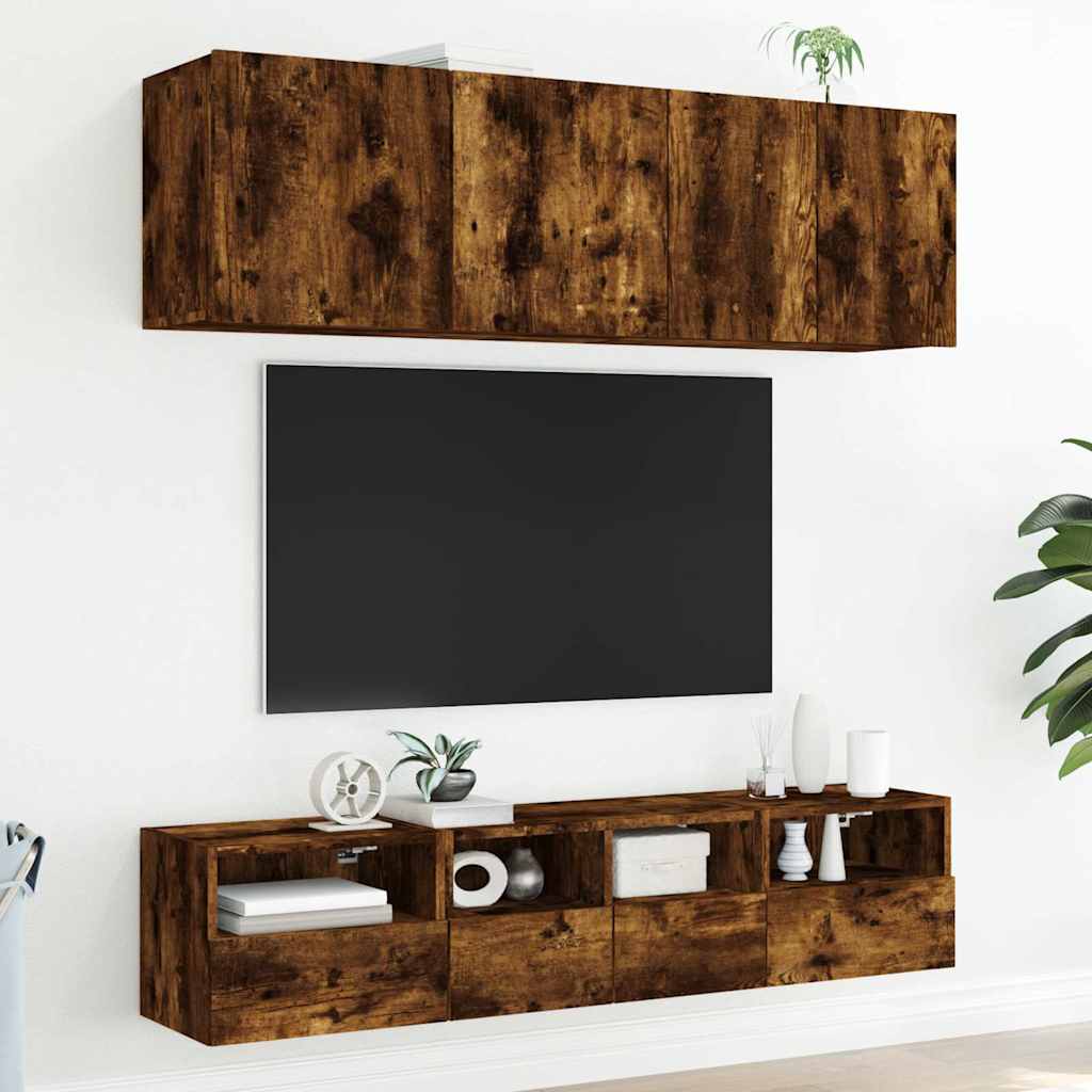 Unități TV de perete, 5 piese, stejar fumuriu, lemn prelucrat GartenMobel Dekor