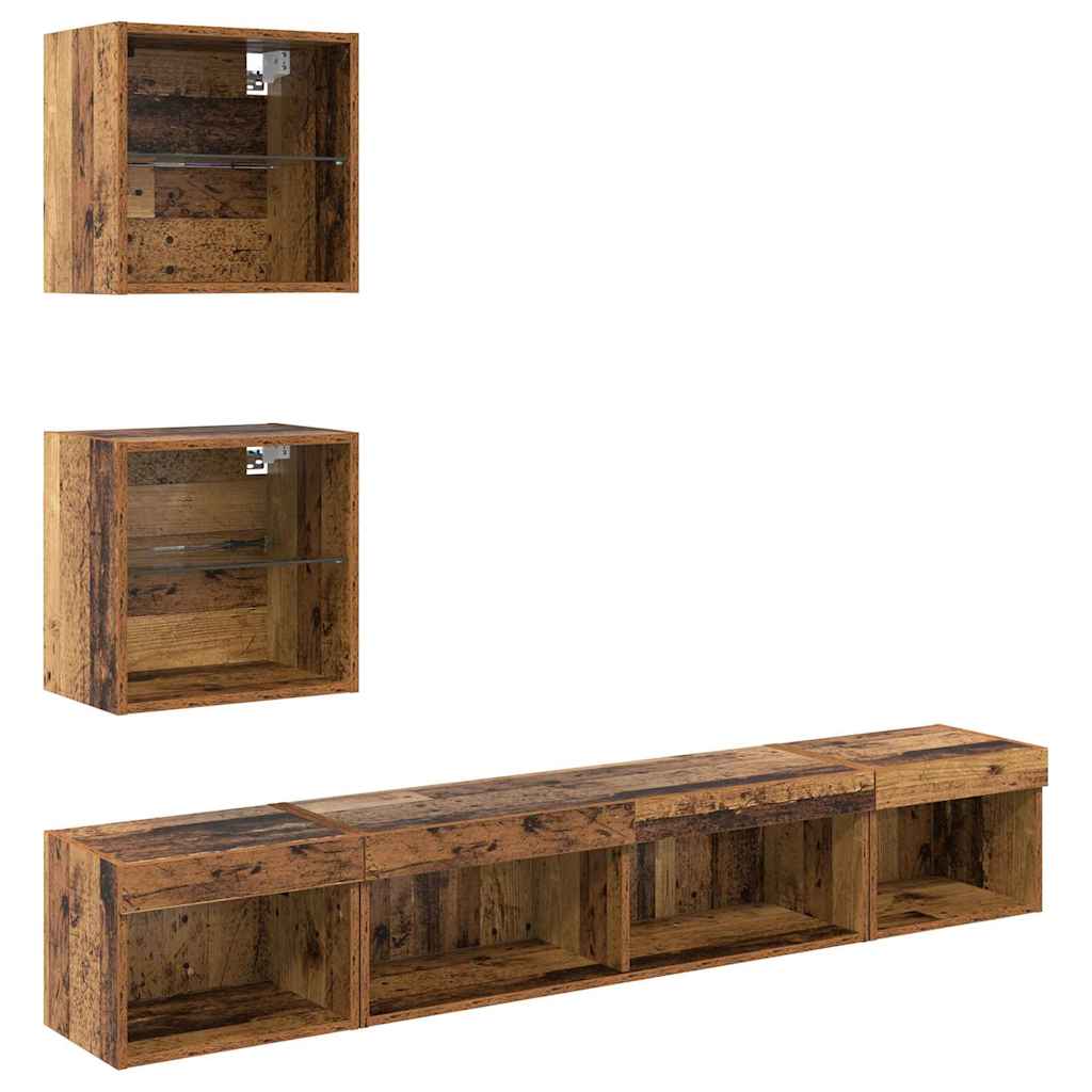 Unități TV de perete cu LED 5 pcs Lemn vechi 100 x 30 x 30 cm GartenMobel Dekor