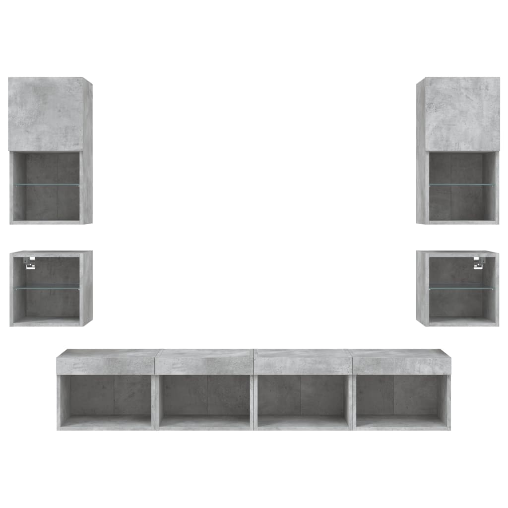 Unități TV de perete cu LED-uri 8 piese gri beton lemn compozit GartenMobel Dekor