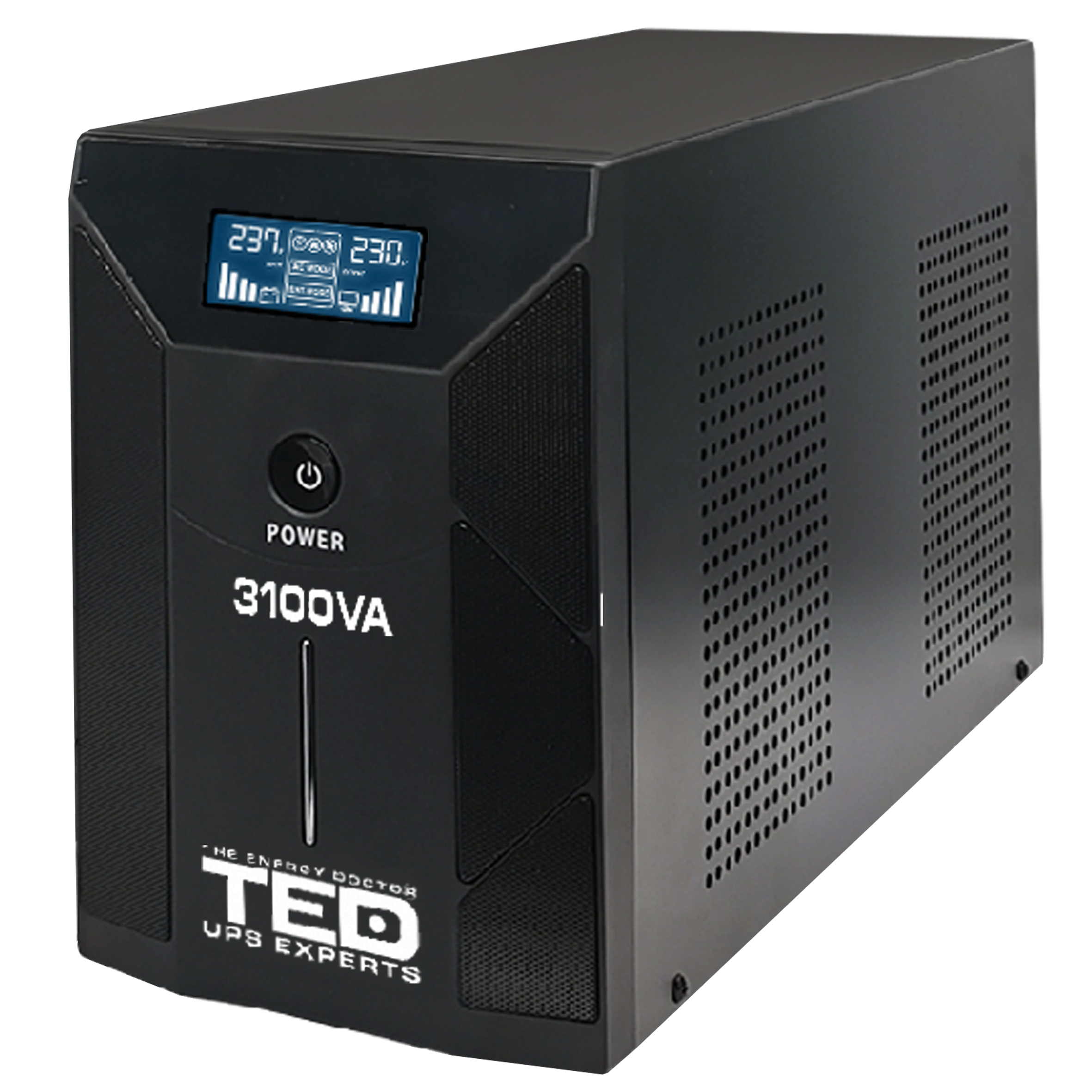 UPS 3100VA / 1800W LCD dispaly Line Interactive cu stabilizator 3 iesiri schuko TED UPS Expert TED001627 SafetyGuard Surveillance