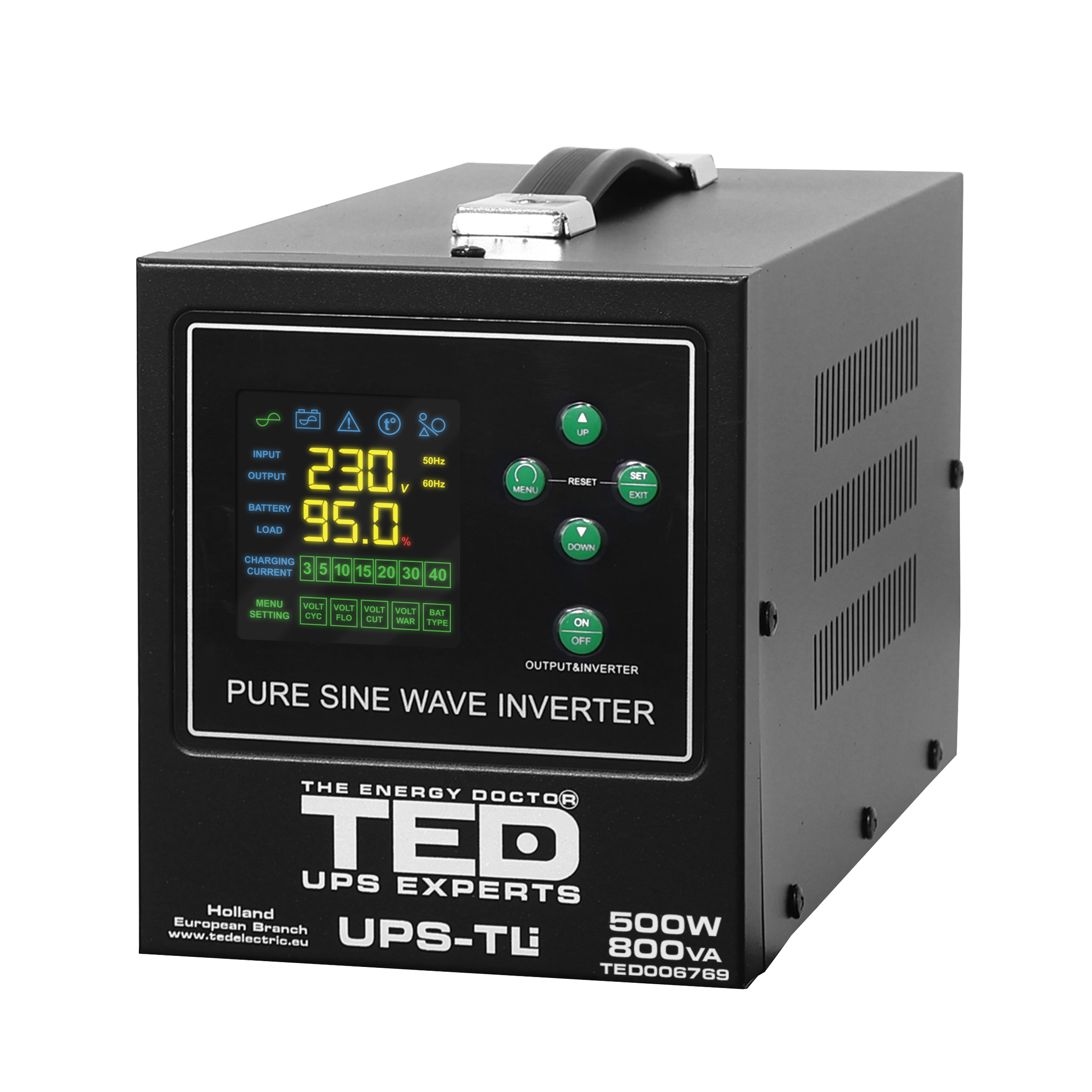 UPS TED Electric 1000VA/700W cu runtime extins și undă sinusoidală pură