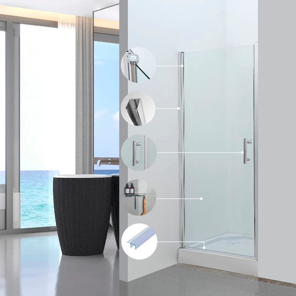 Utilizare și montaj: ușa se poate instala pe cădiță de duș sau direct pe podea, fiind potrivită pentru montaj pe partea stângă sau dreaptă. Profilul reglabil ajută la aliniere, iar mecanismul de ridicare contribuie la o închidere mai precisă și la o etanșare bună.