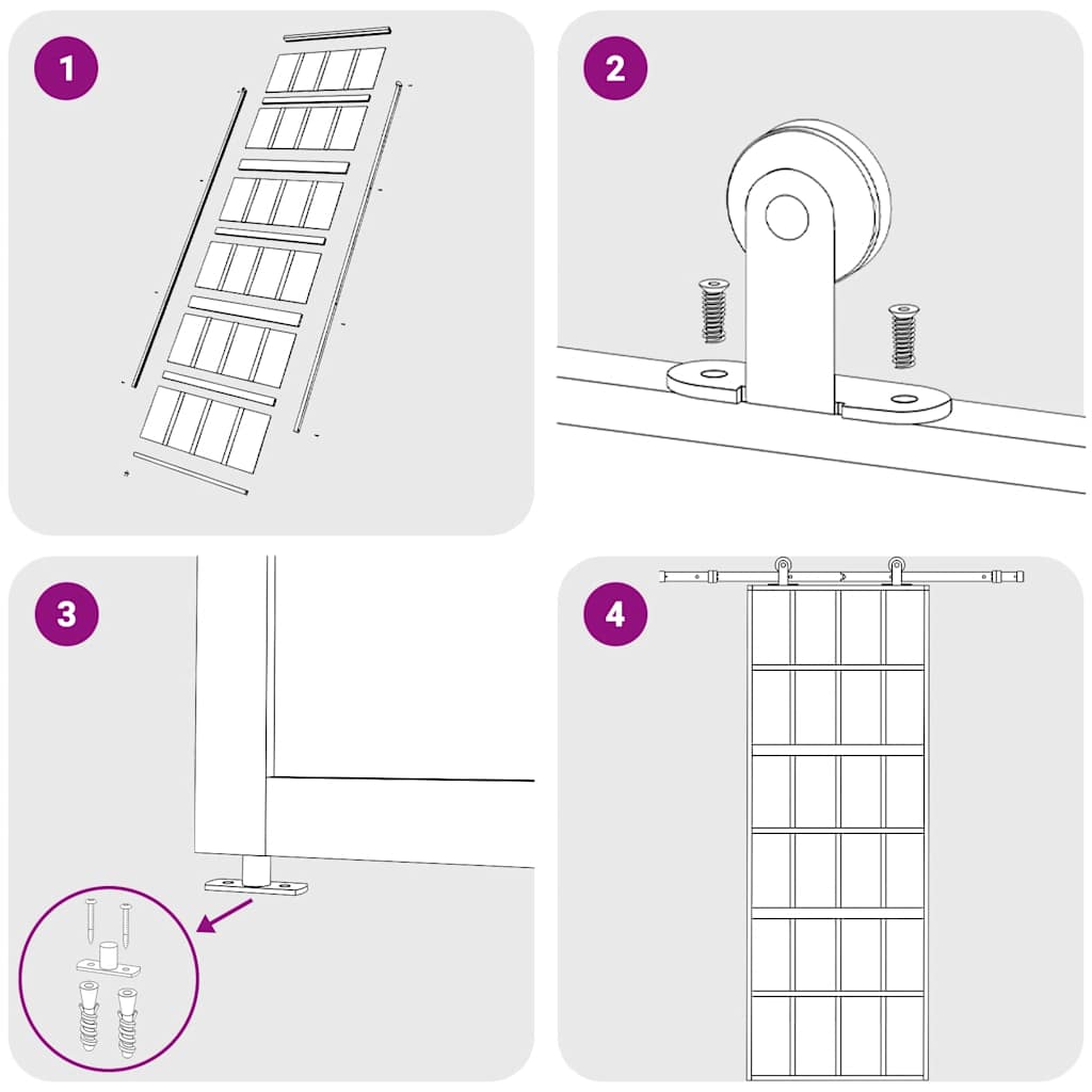 - Pentru modul de instalare, puteți verifica manualul nostru de instalare a ușii și a setului de feronerie glisantă.