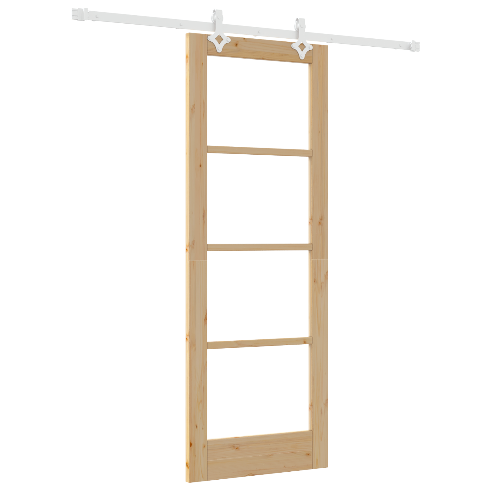 Ușă Glisantă cu Set de Accesorii 73.5x198.5 cm Lemn Masiv Pin, Ușă Interioară cu Sticlă "ORKDAL" 73.5x198.5x4 cm Lemn Masiv Pin GartenMobel Dekor