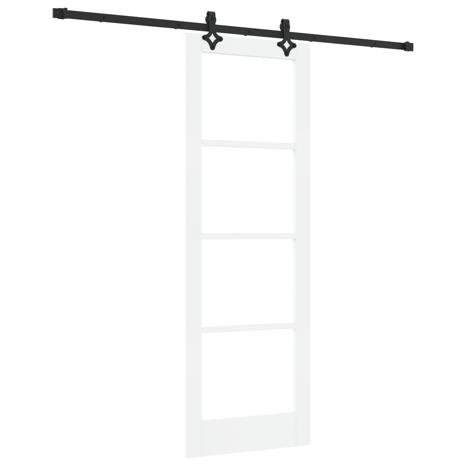 Ușă glisantă cu set de accesorii Alb 73.5x211 cm Lemn masiv Pin, Ușă interioară cu sticlă 'ORKDAL'Alb 73.5x211x4 cm GartenMobel Dekor