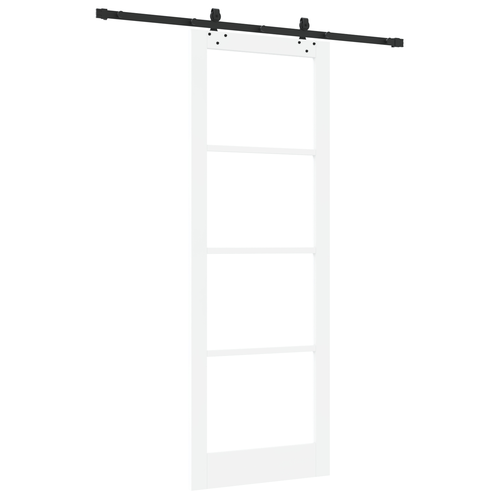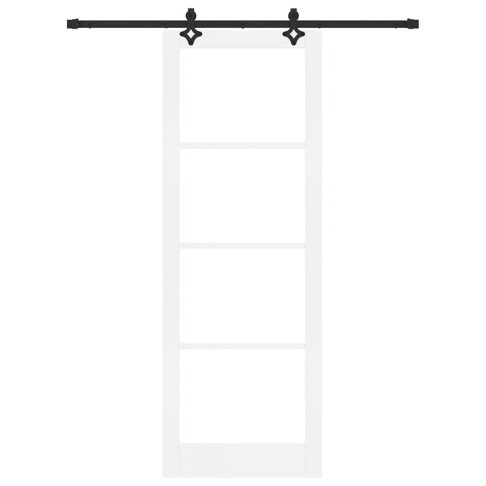 Ușă Glisantă cu Set de Accesorii "ORKDAL" Alb Lemn Solid și Sticlă, Ușă Interioară cu Sticlă "ORKDAL" Alb 83x232x4 cm GartenMobel Dekor