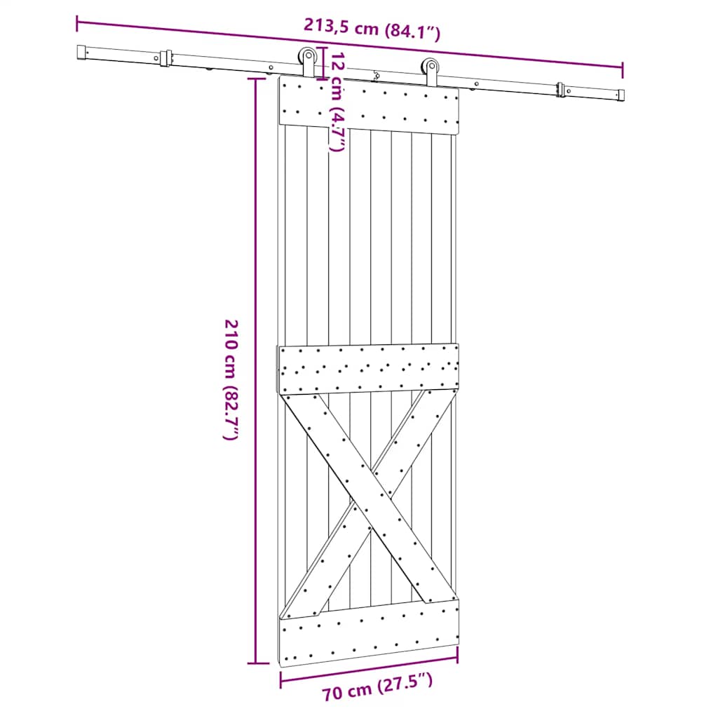 Ușă glisantă cu set de feronerie 70x210 cm, lemn masiv de pin GartenMobel Dekor