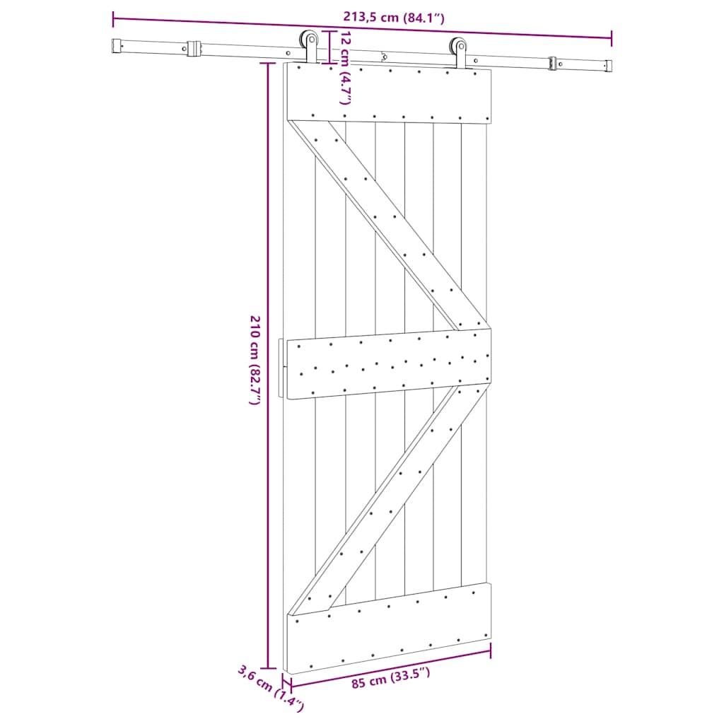 Ușă glisantă cu set de feronerie 85x210 cm, lemn masiv de pin GartenMobel Dekor