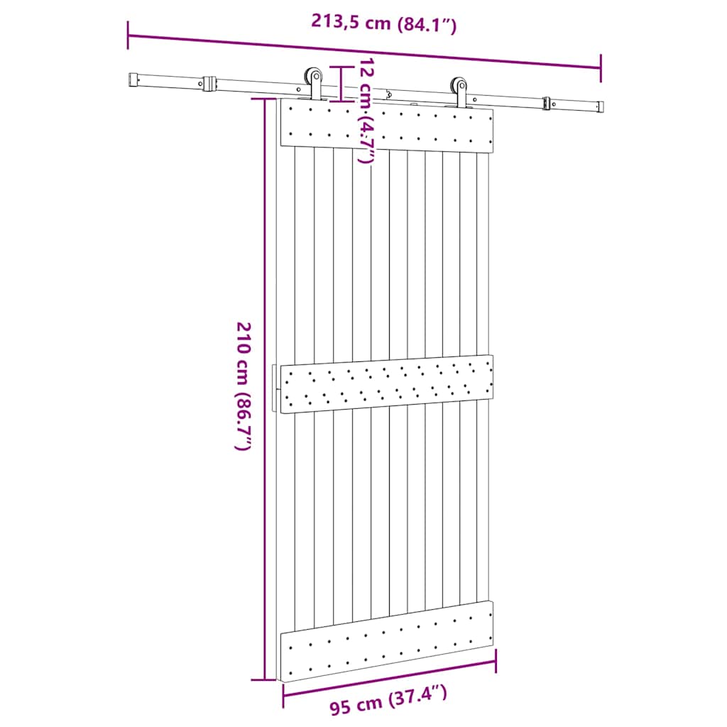 Ușă glisantă cu set de feronerie 95x210 cm, lemn masiv de pin GartenMobel Dekor
