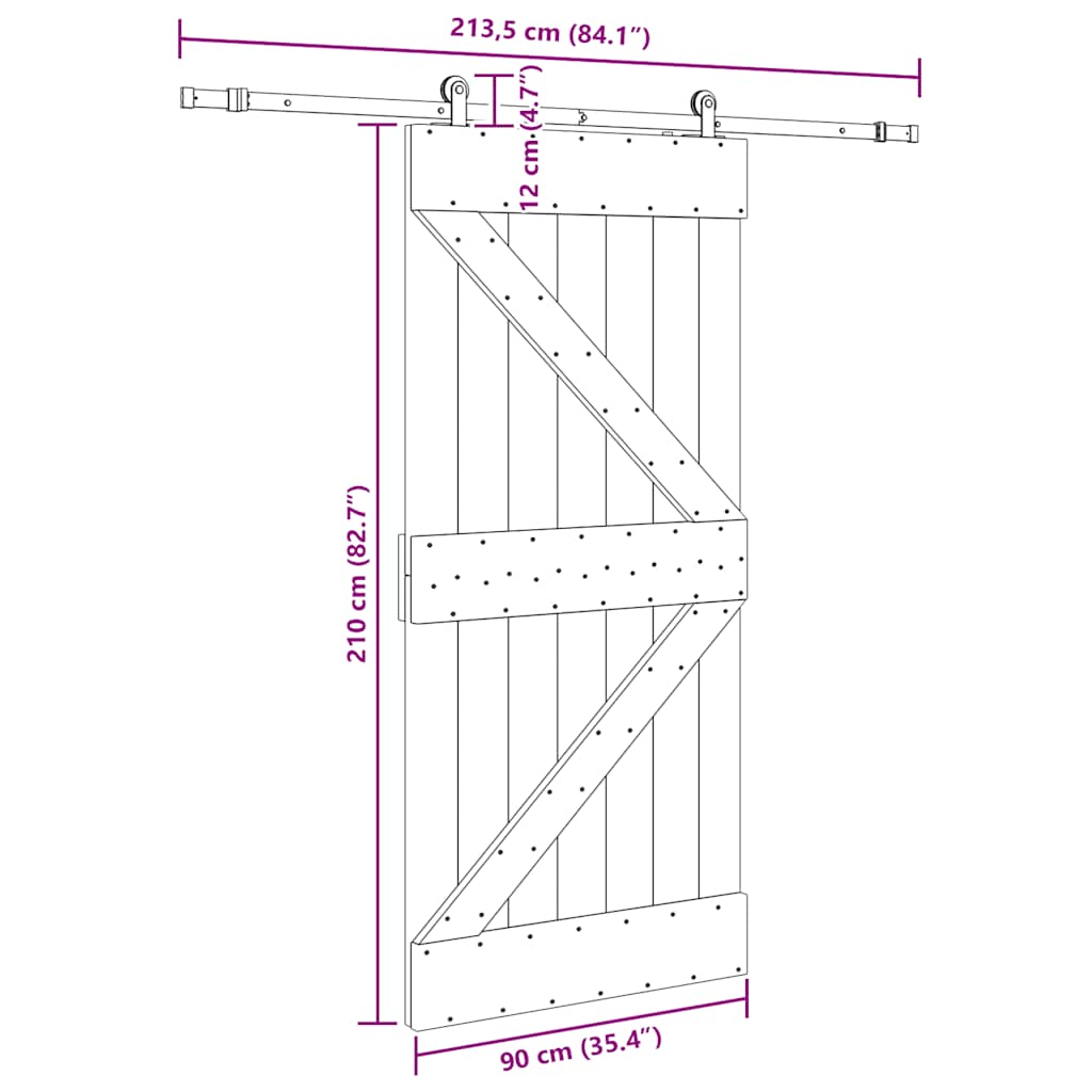 Ușă glisantă cu set feronerie, 90x210 cm, lemn masiv de pin GartenMobel Dekor