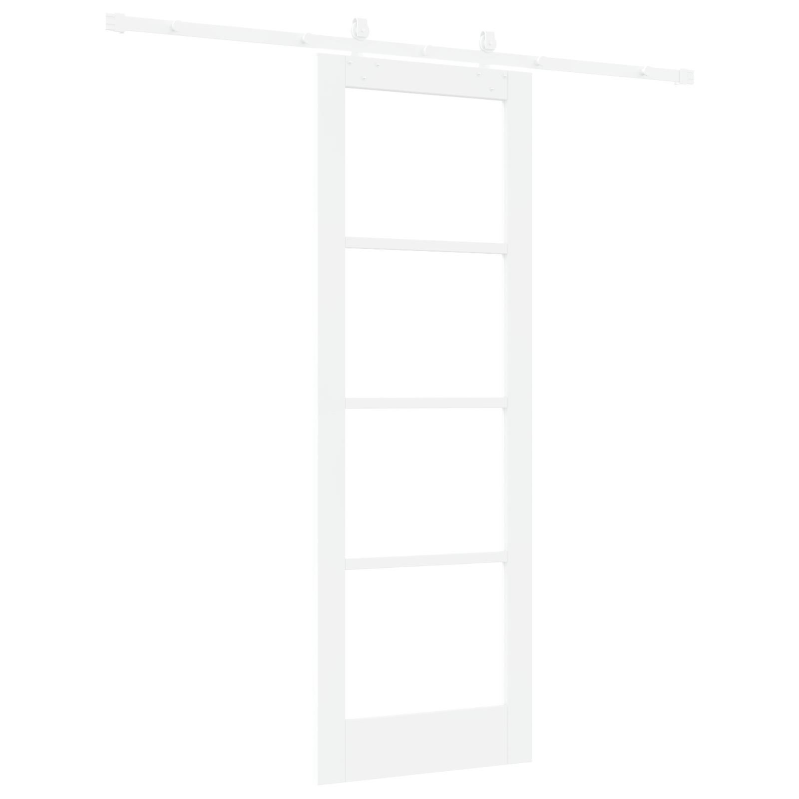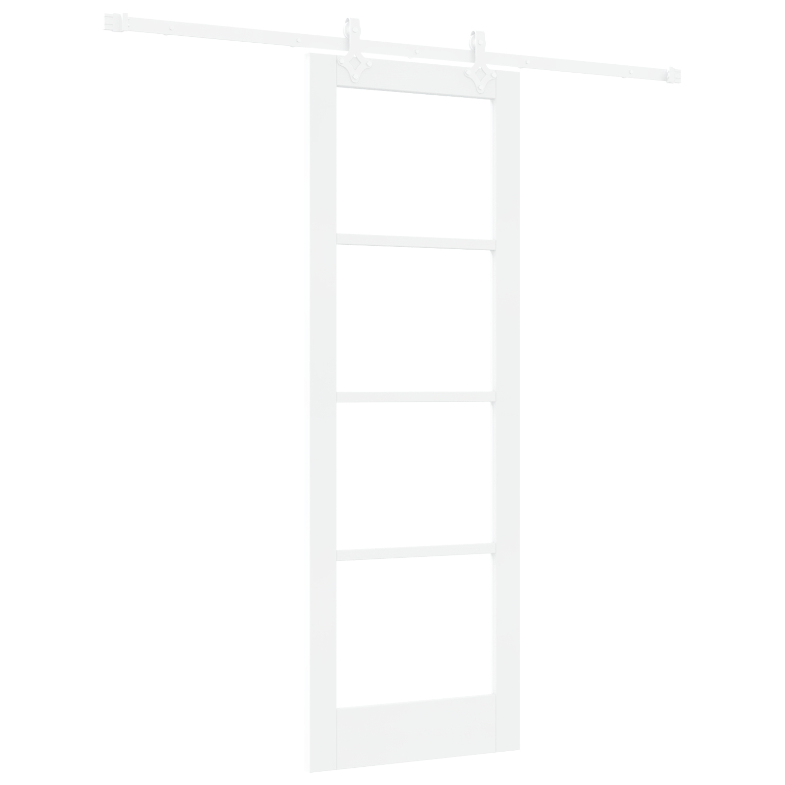 Ușă Glisantă cu Set Hardware Alb 73.5x211 cm Lemn Masiv Pin, Ușă Interioară cu Sticlă 'ORKDAL'Alb 73.5x211x4 cm GartenMobel Dekor