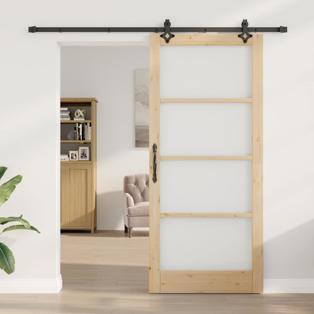 Ușă glisantă natural 93 x 211 cm Lemn masiv de pin și sticlă GartenMobel Dekor