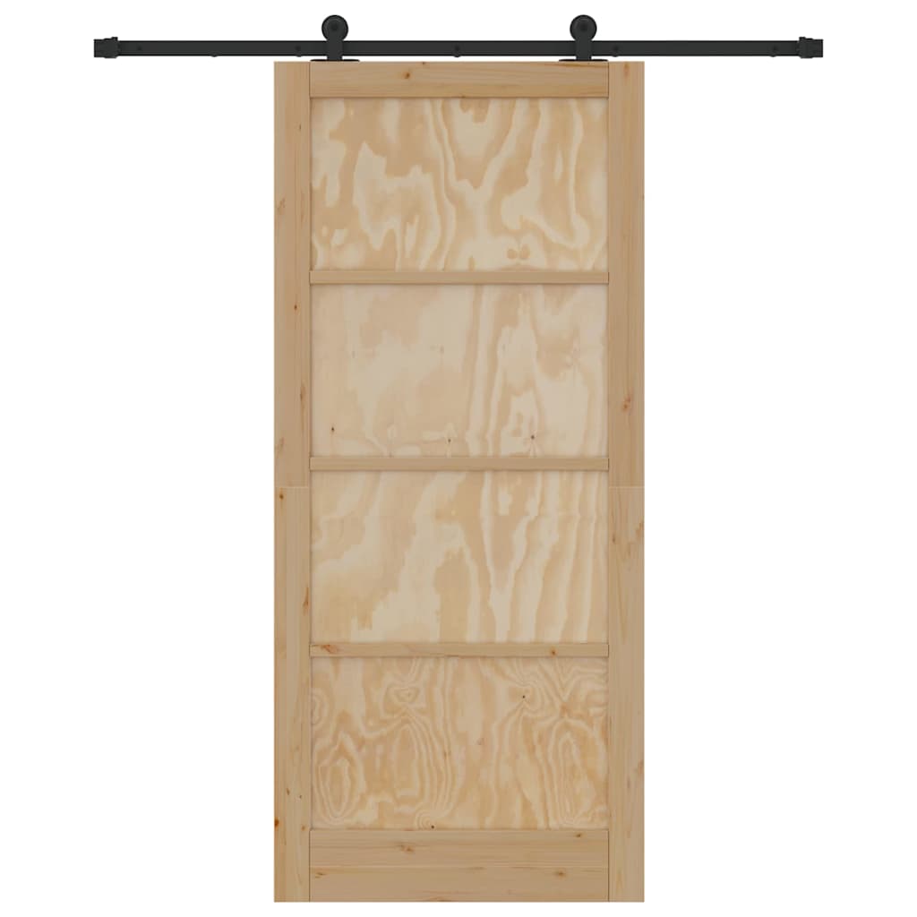 Ușă glisantă Natural și Negru 93 x 211 cm Lemn de pin masiv GartenMobel Dekor