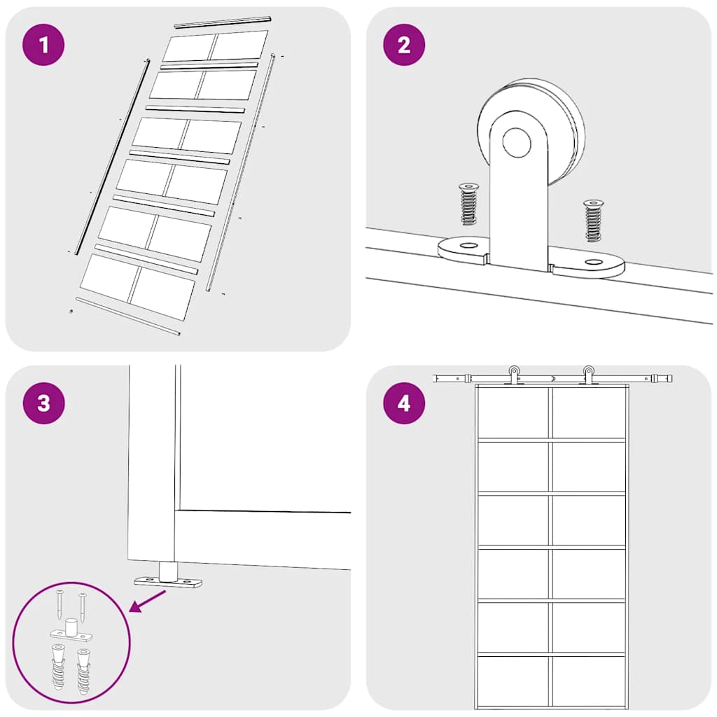 Ușa poate fi montată numai în combinație cu seturile de feronerie pentru uși glisante. Puteți găsi seturile potrivite de feronerie pentru uși glisante în magazinul nostru (SKU: 145262-145263). Pentru modul de instalare, puteți verifica manualul nostru de instalare a ușii glisante și a seturilor de feronerie.