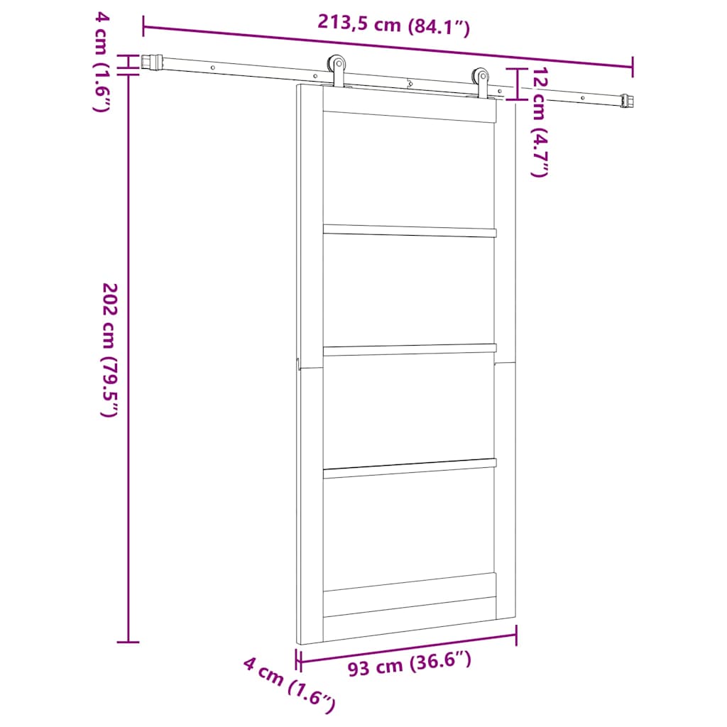 Ușă glisantă ORKDAL Alb 93 x 202 cm Lemn masiv de pin și sticlă GartenMobel Dekor