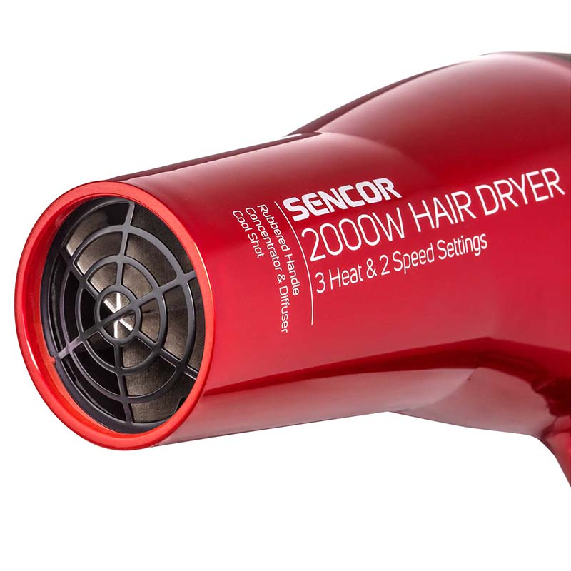 Uscător de păr Sencor 2000W cu difuzor, duză și funcție aer rece, roșu