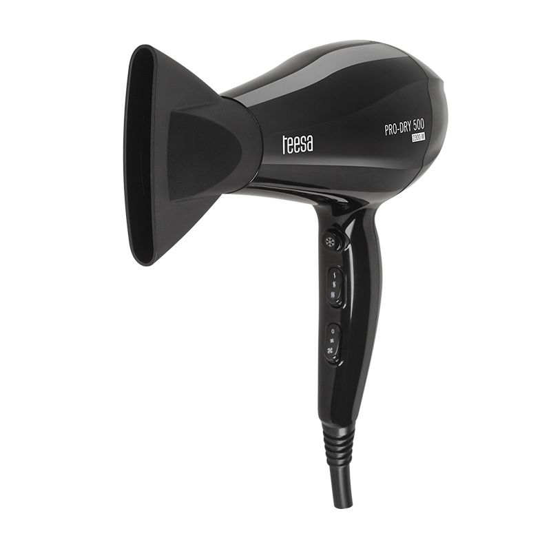 Obține o coafare rapidă și confortabilă cu uscătorul de păr Teesa Pro-Dry 500, cu motor AC și putere de până la 2300W. Funcția de ionizare ajută la reducerea electrizării, pentru un păr mai neted și mai ușor de aranjat, iar opțiunea de aer rece fixează coafura la final.