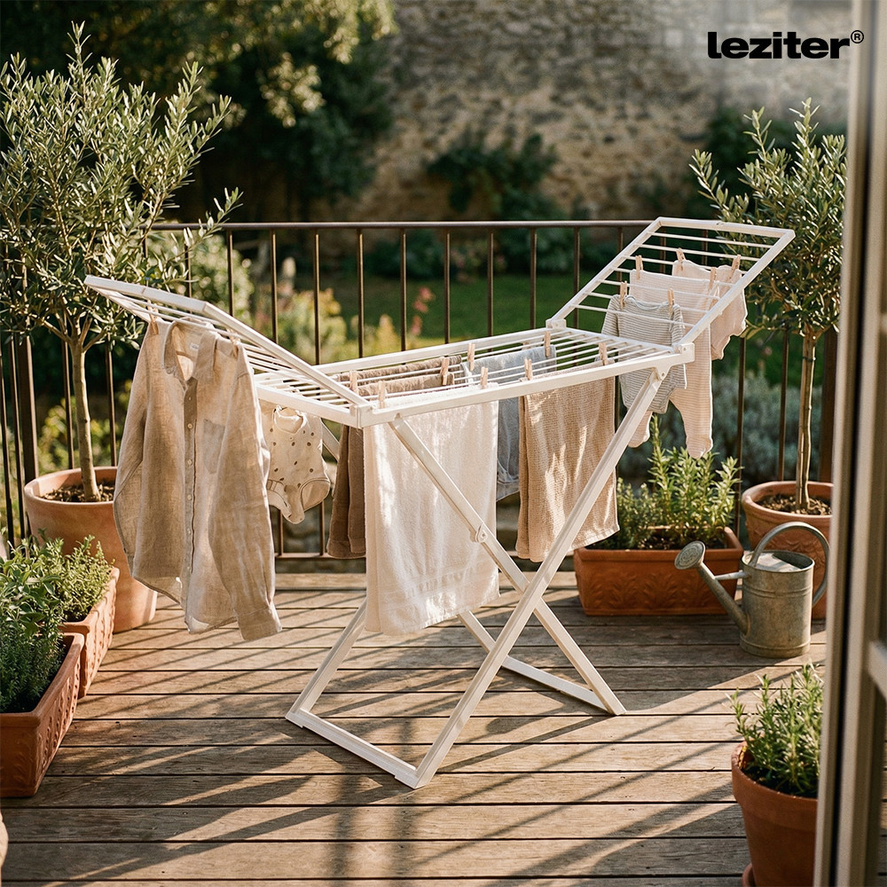 Este o soluție practică pentru familii, persoane active sau locuințe unde spațiul trebuie folosit eficient. Se montează și se pliază rapid, iar forma sa permite aerisirea bună a hainelor pentru o uscare mai confortabilă.