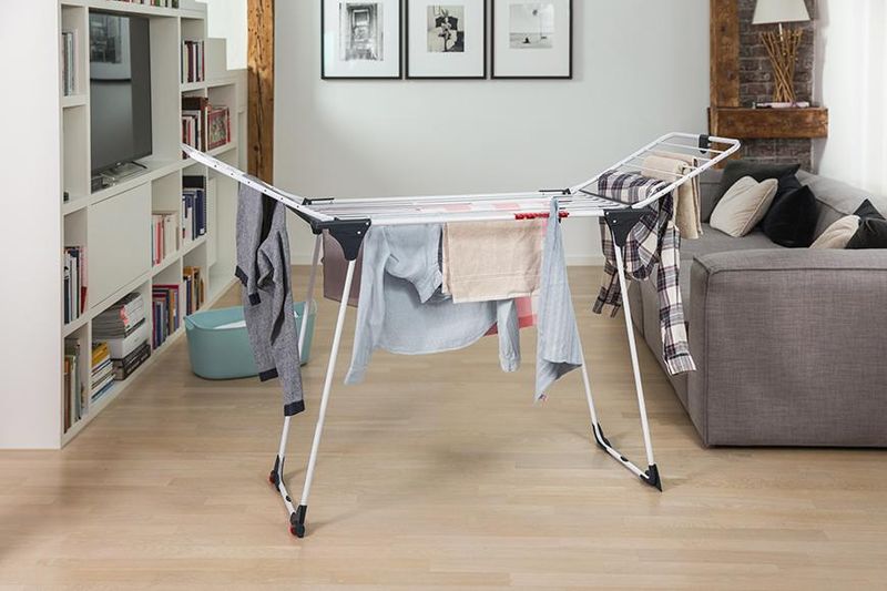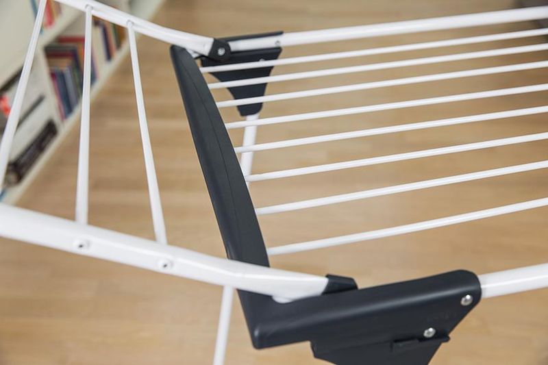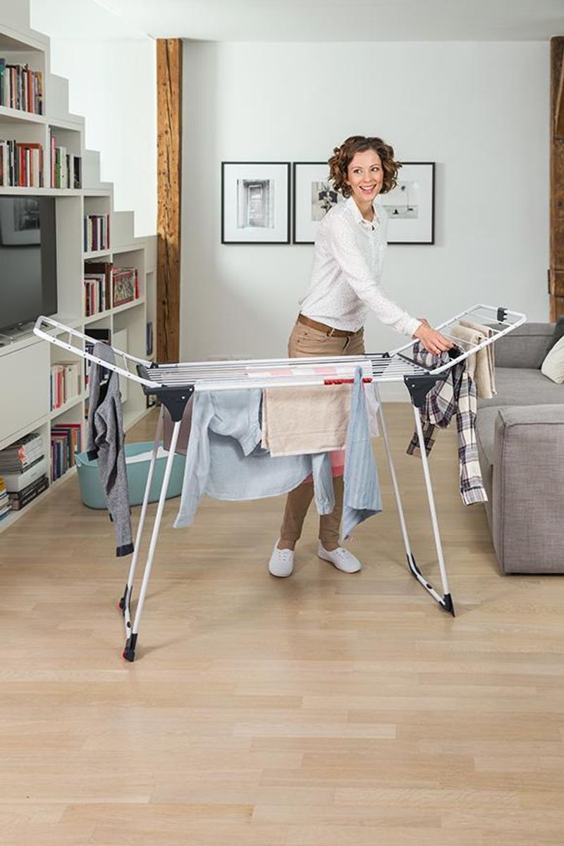 Datorită sârmelor XXL, hainele se șifonează mai puțin în timpul uscării, ceea ce poate reduce timpul necesar pentru călcare. Aripile laterale oferă spațiu suplimentar pentru articole mai lungi, iar forma sa practică îl face ușor de mutat și de depozitat.