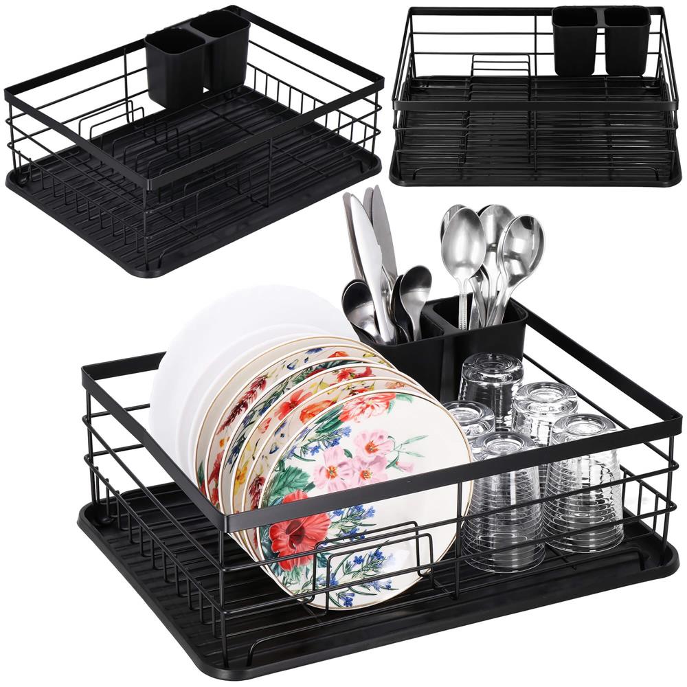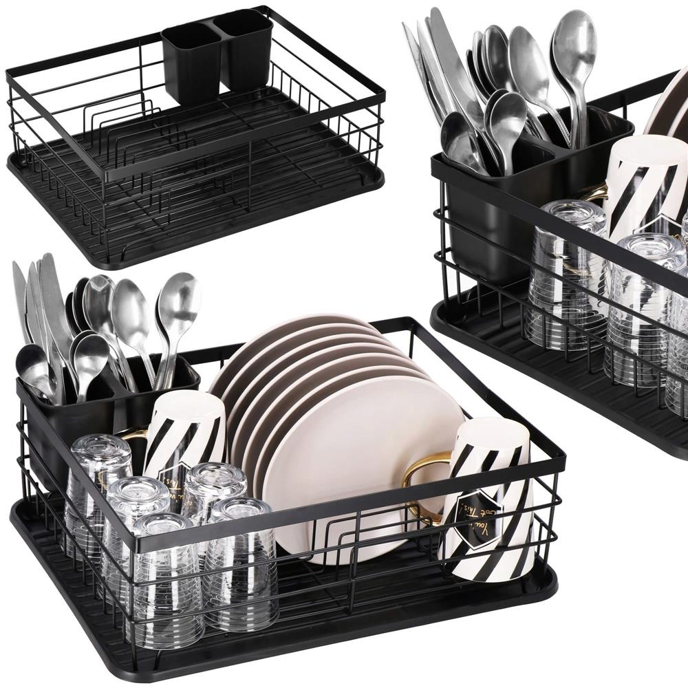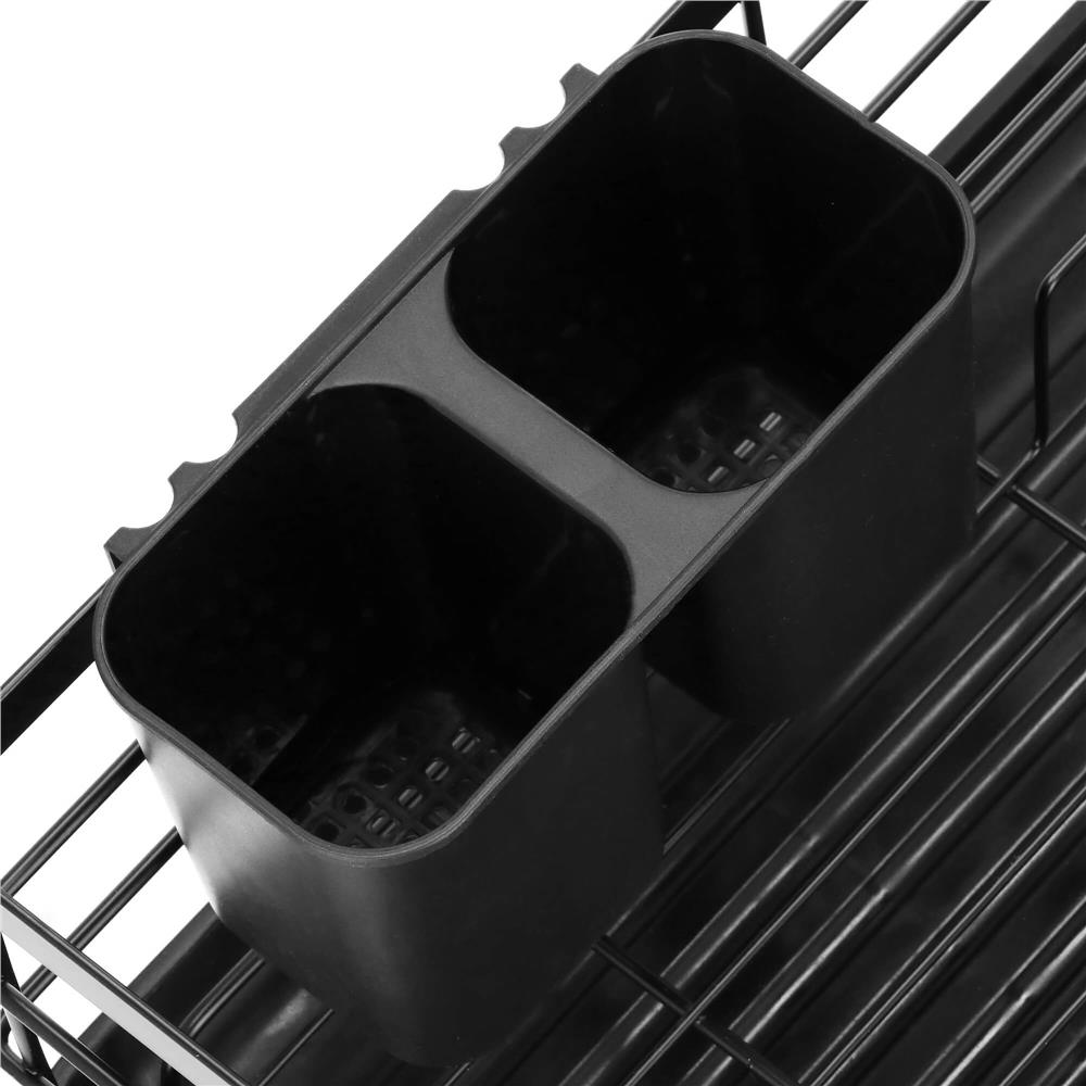 Uscator de vase cu suport tacamuri, din otel, cu tava de scurgere, 42x32x15cm, negru Household NewTrend