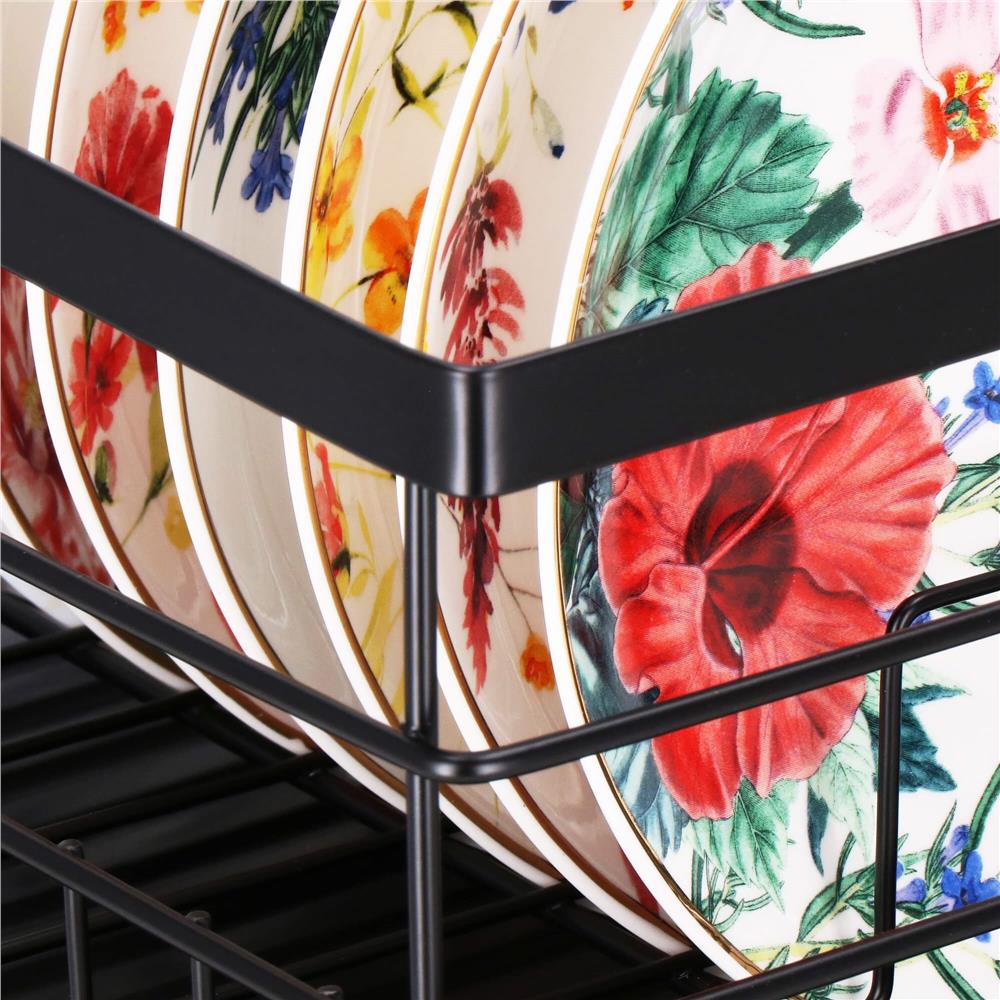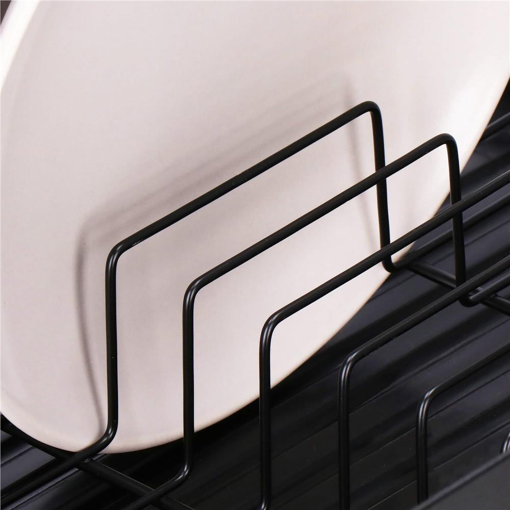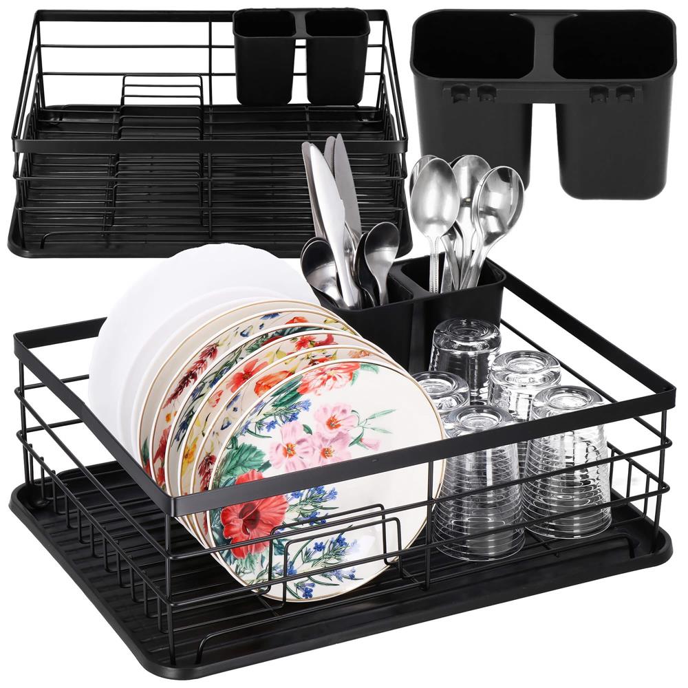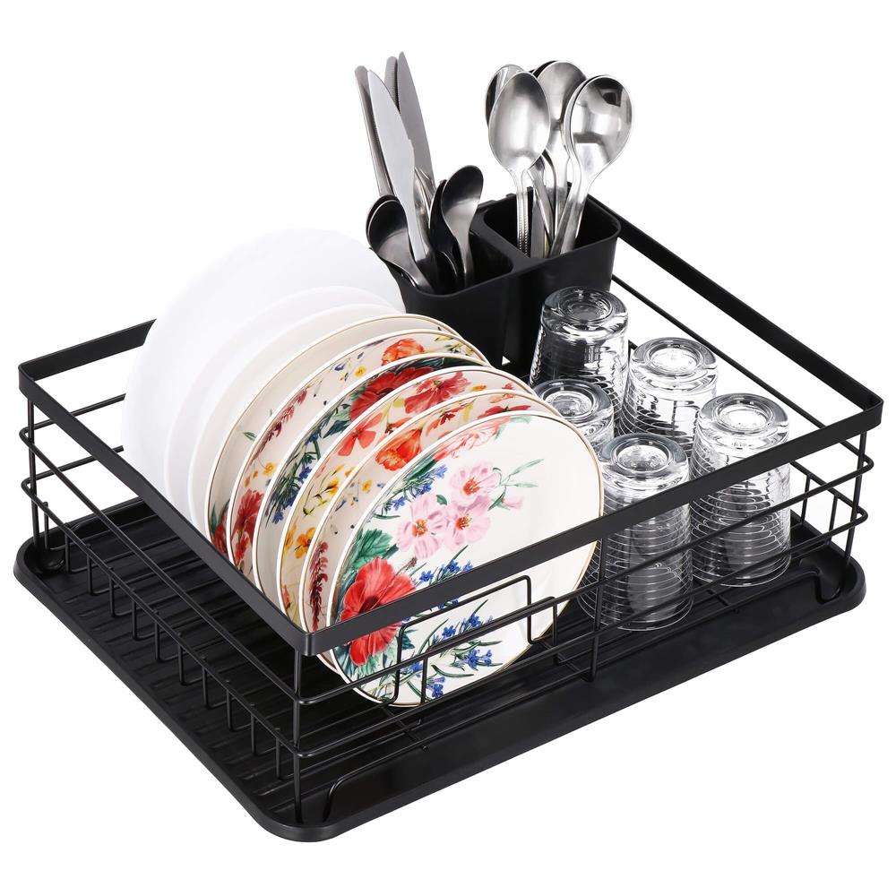 Uscator de vase cu suport tacamuri, din otel, cu tava de scurgere, 42x32x15cm, negru Household NewTrend