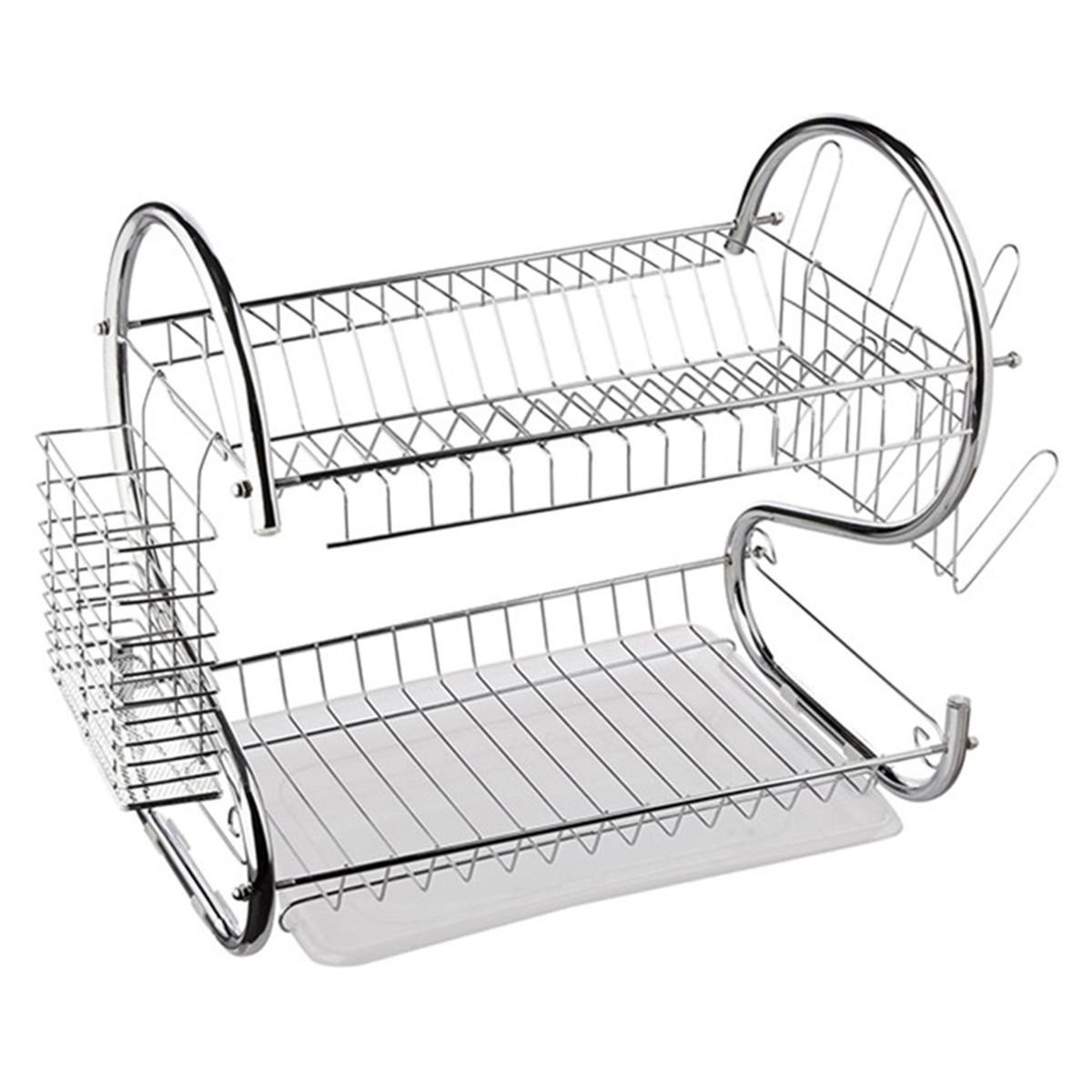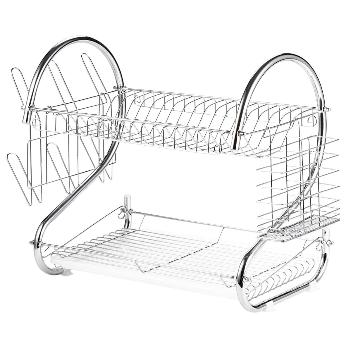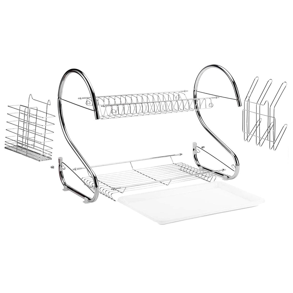 Uscător de vase și tacâmuri de înaltă calitate, cromat, pe două niveluri, cu scurgere. Poate ține cu ușurință până la 15 farfurii la nivelul superior. Pune-ți paharele și paharele în ordinea corectă la nivelul inferior. Este extrem de spatios si este echipamentul necesar pentru fiecare bucatarie! Se va potrivi cu un set de vase și tacâmuri pentru toți membrii gospodăriei! Îl poți ascunde cu ușurință într-un dulap de bucătărie datorită dimensiunilor sale compacte! Are o serie de elemente suplimentare, detașabile, de exemplu, o tavă de plastic pentru colectarea apei, un scurgere suplimentar pentru tacâmuri și un cuier extern pentru până la 6 pahare. Este o adevărată mașină de recoltat de bucătărie, care va organiza eficient toate seturile de feluri de mâncare din bucătăria ta!