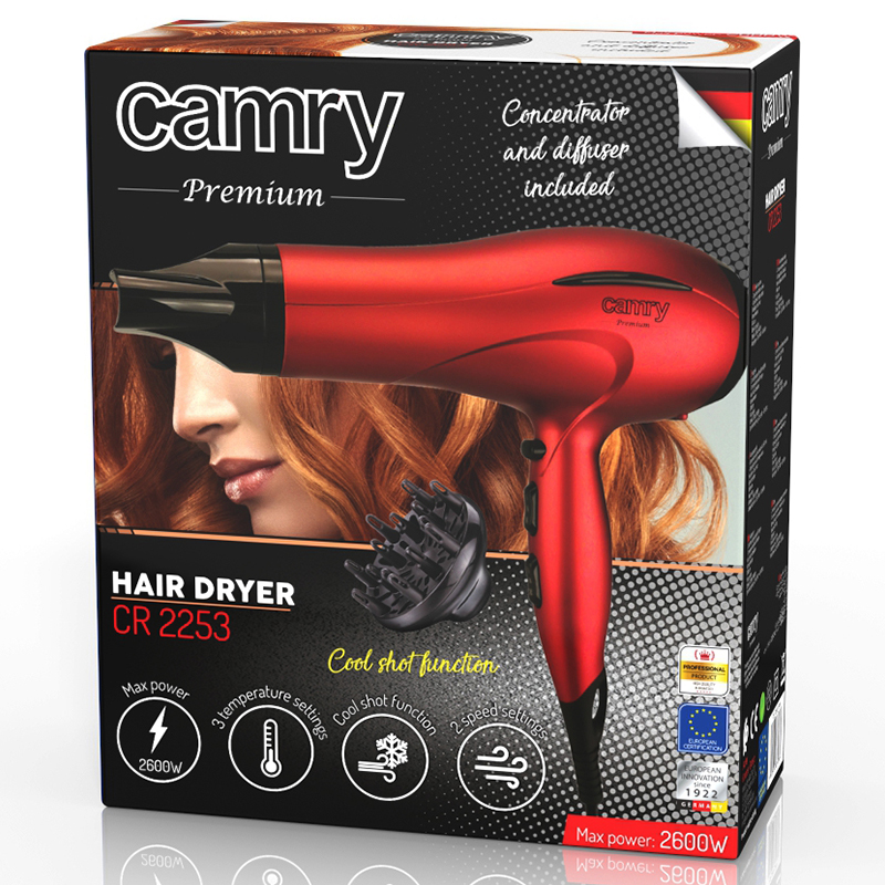 Uscatorul de par Camry 2253 este o alegere excelenta pentru persoanele care apreciaza parul bine ingrijit. Uscatorul de par va ofera posibilitatea de a regla atat viteza, cat si temperatura (inclusiv cea rece).