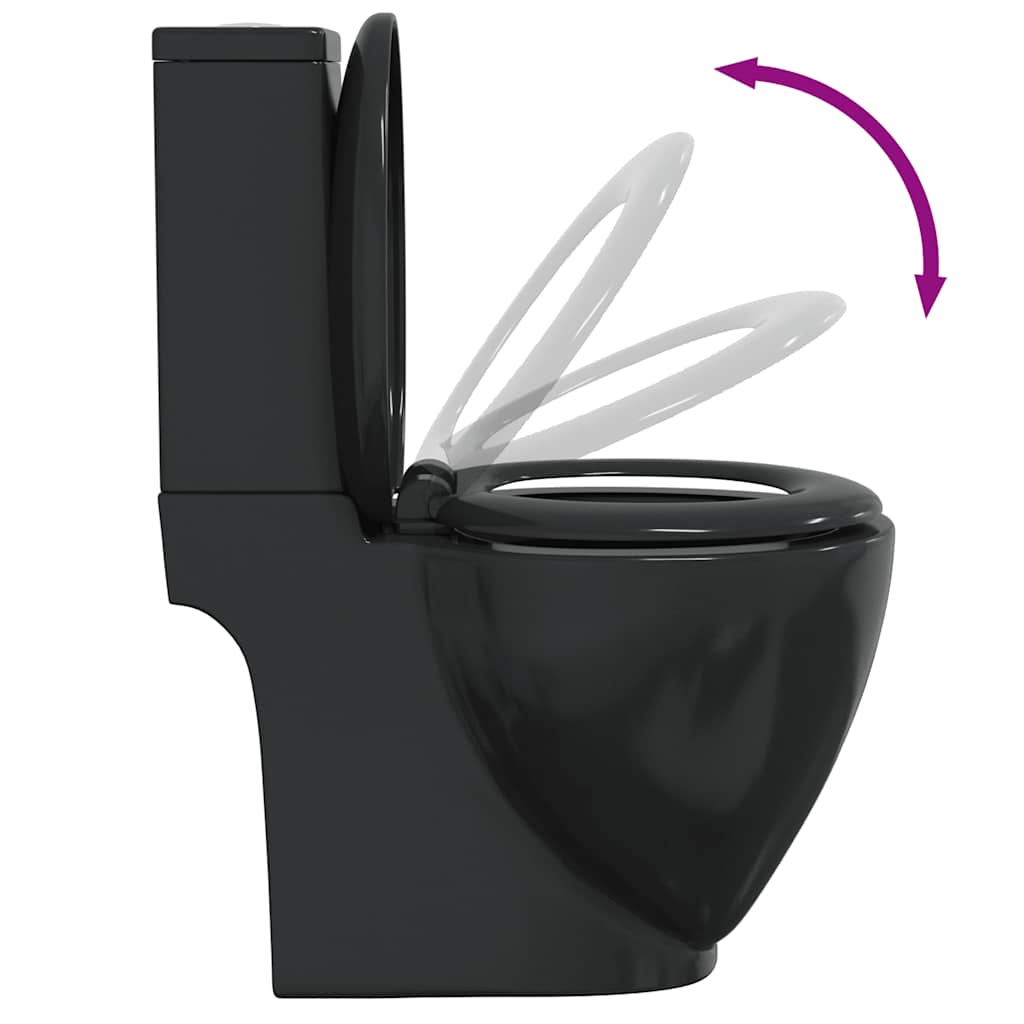 Vas WC toaletă baie, negru, ceramică, rotund, flux inferior GartenMobel Dekor