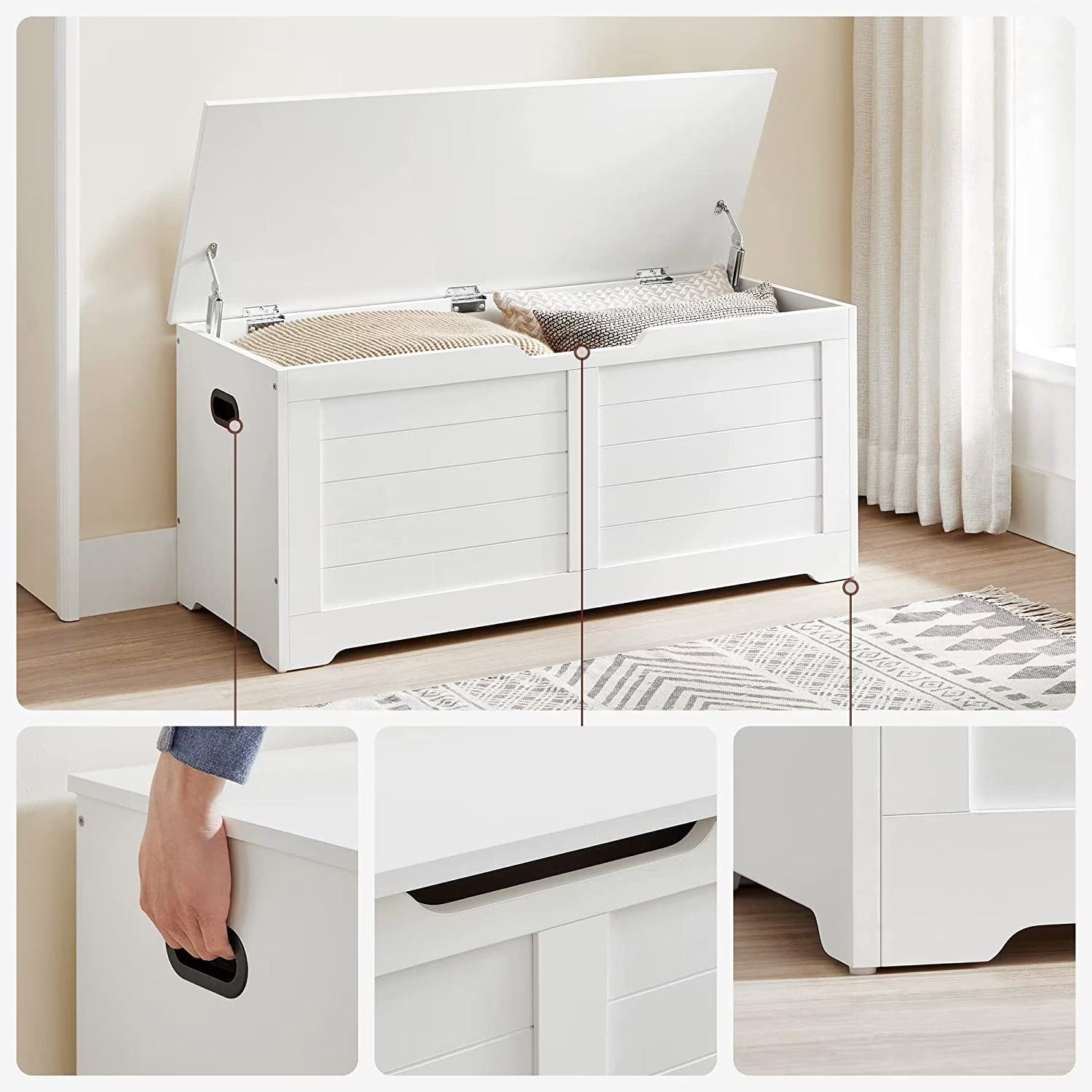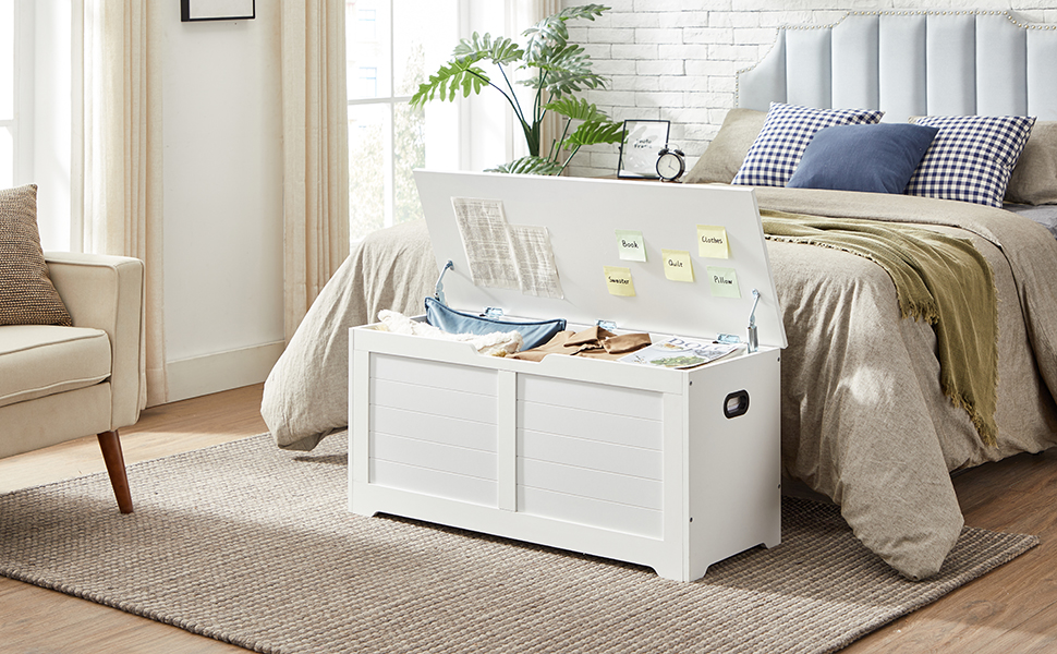 VASAGLE Banca cu spatiu de depozitare, pentru hol sau dormitor, din MDF, 40x100x46cm, alb Household NewTrend