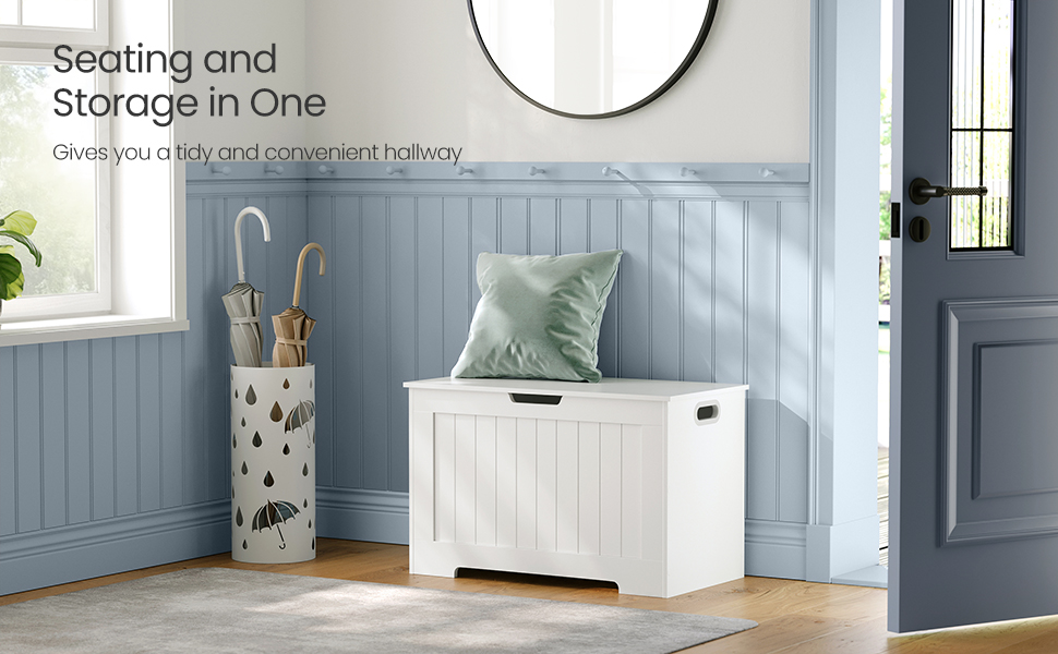 VASAGLE Banca cu spatiu depozitare, pentru hol sau dormitor, din PAL, 76x40x48cm, alb Household NewTrend