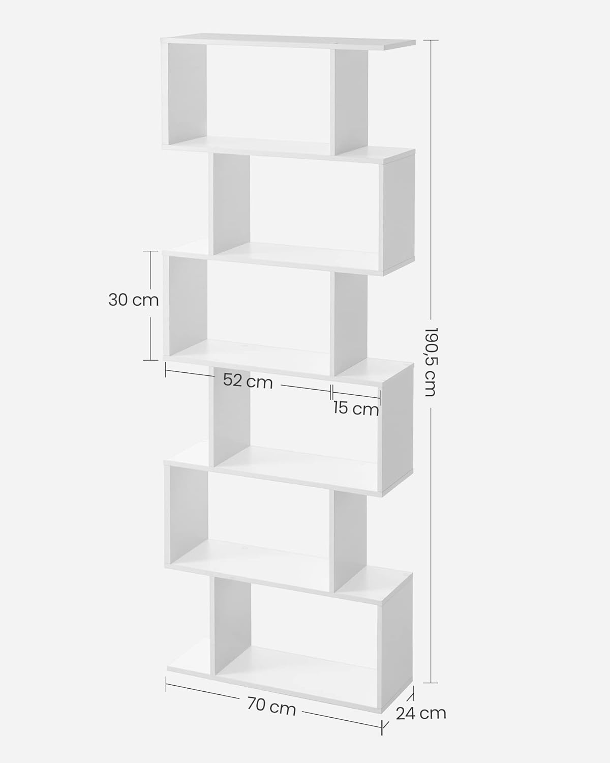 VASAGLE Biblioteca, raft cu 6 unitati de depozitare, pentru living, din lemn, 24x190x70cm, alb Household NewTrend