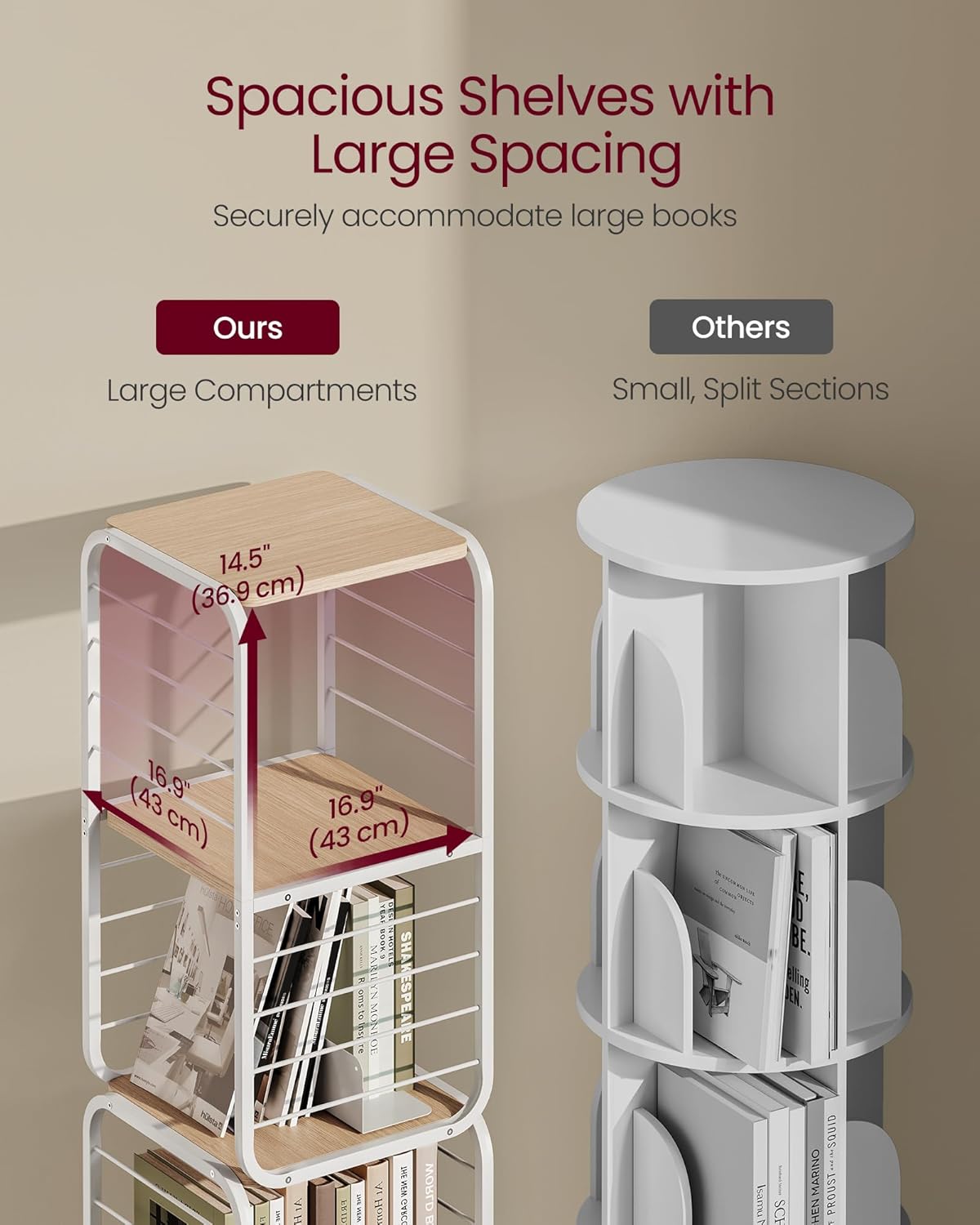 Descriere VASAGLE Biblioteca rotativa 360 grade, cadru