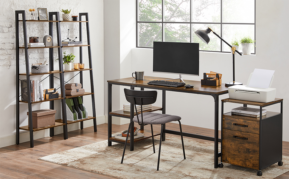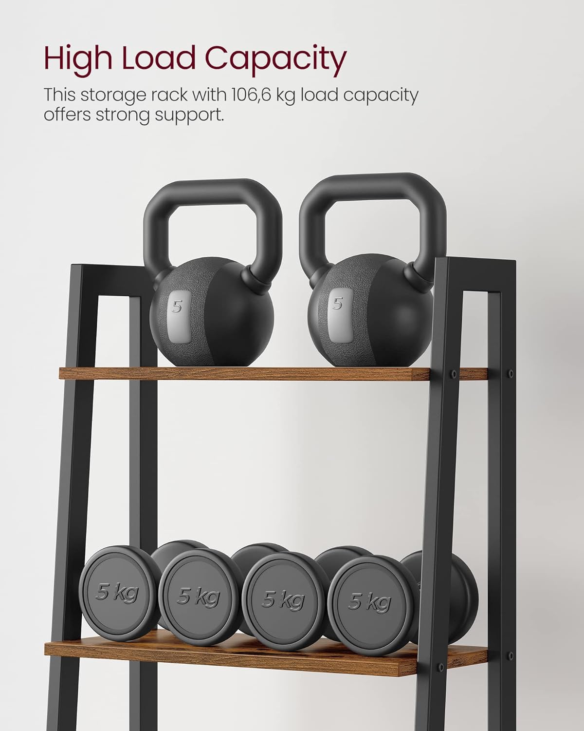 VASAGLE Biblioteca tip scara, cadru otel cu 5 polite din MDF, stil industrial, 56x34x172cm, maro rustic si negru Household NewTrend