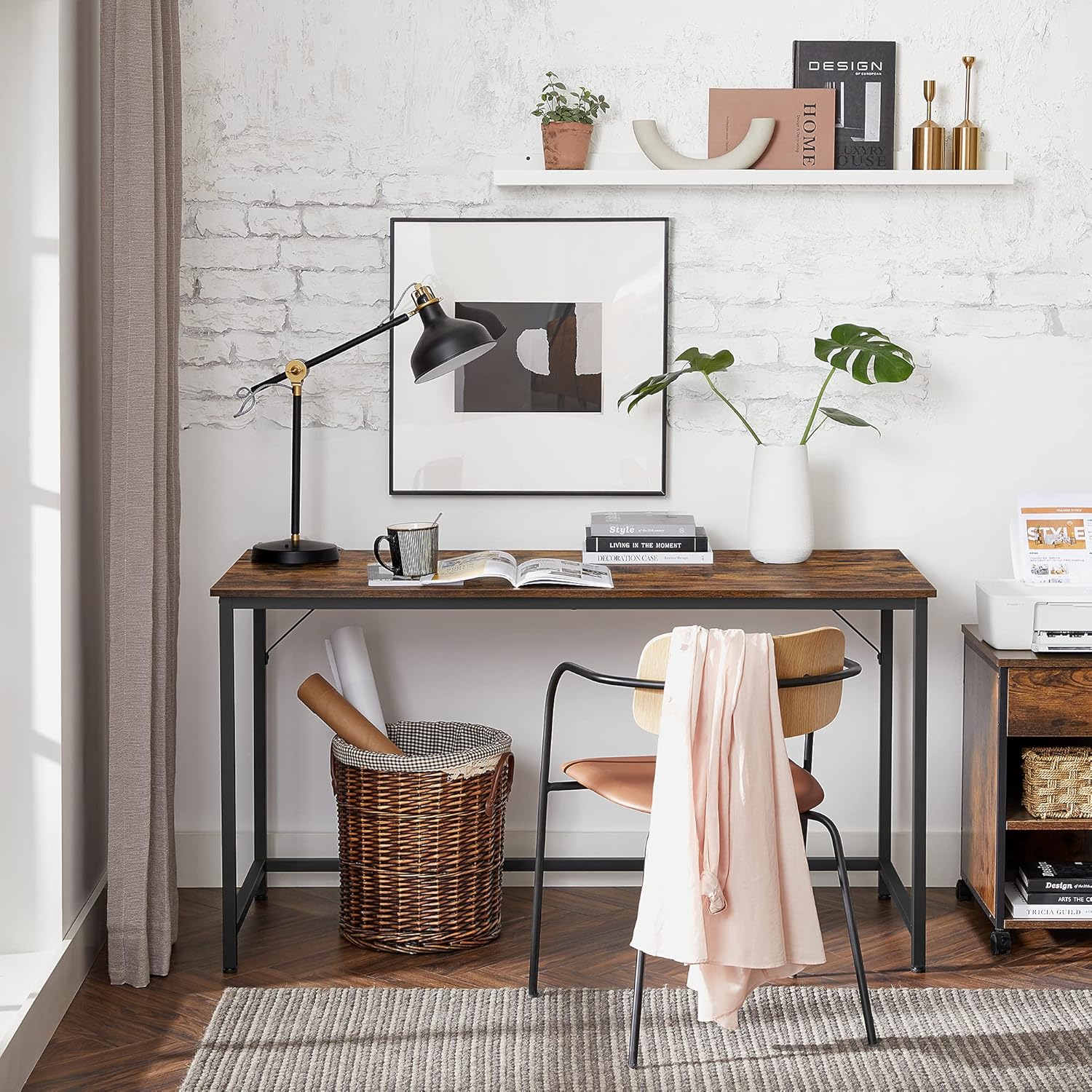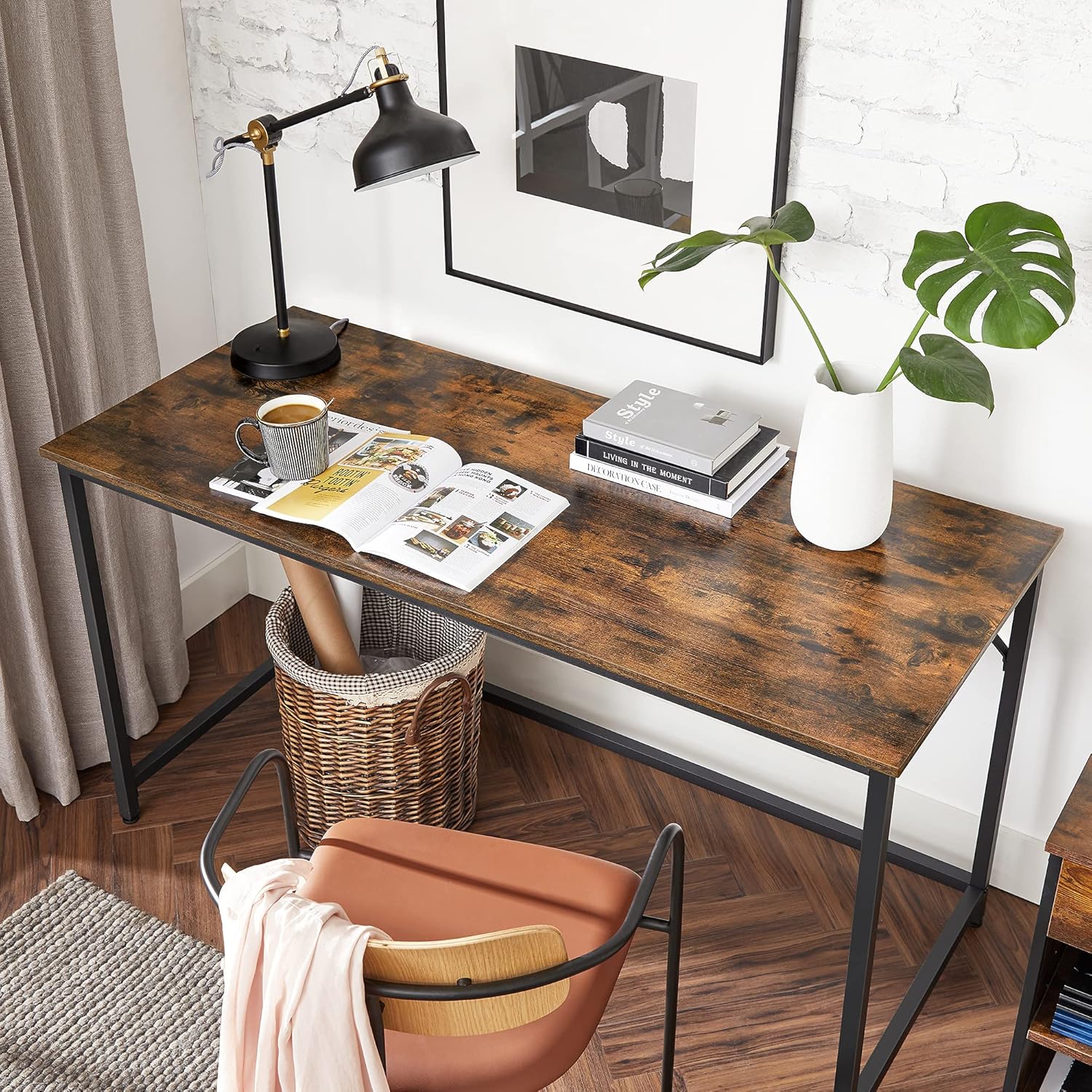 VASAGLE Birou calculator cu cadru metalic si blat PAL, stil industrial, 135x60x76 cm, maro rustic Household NewTrend