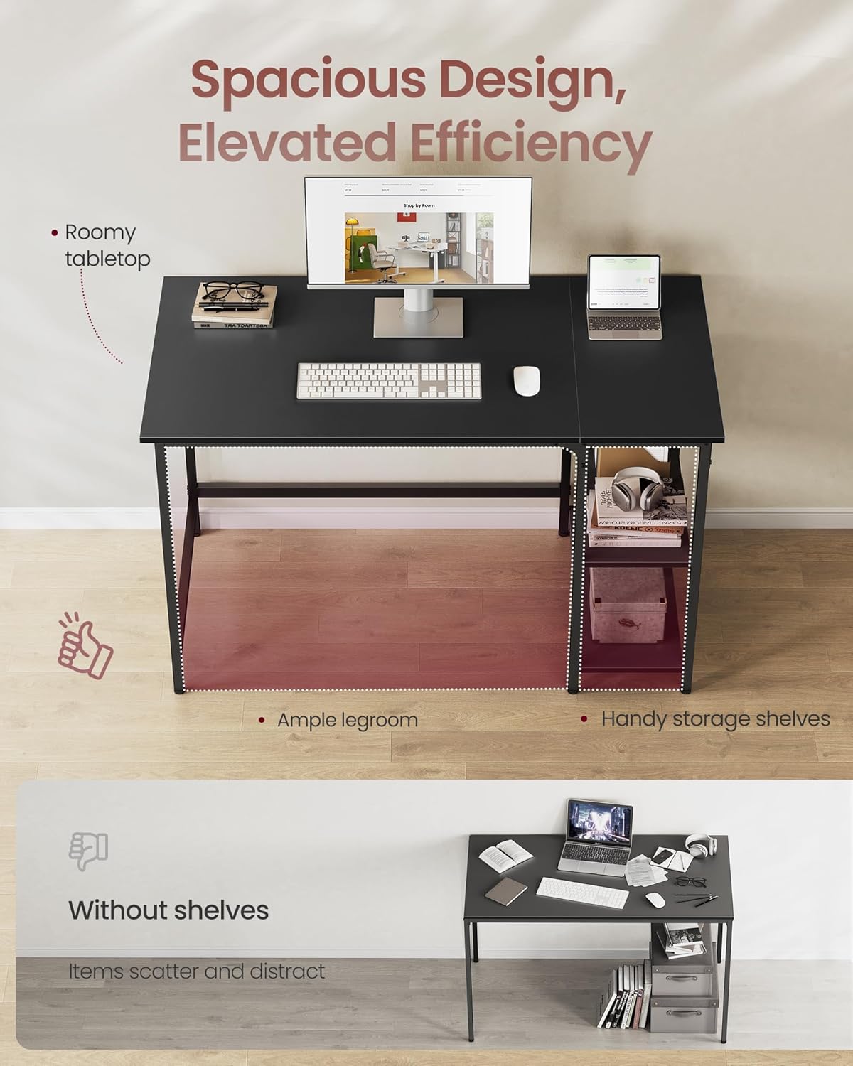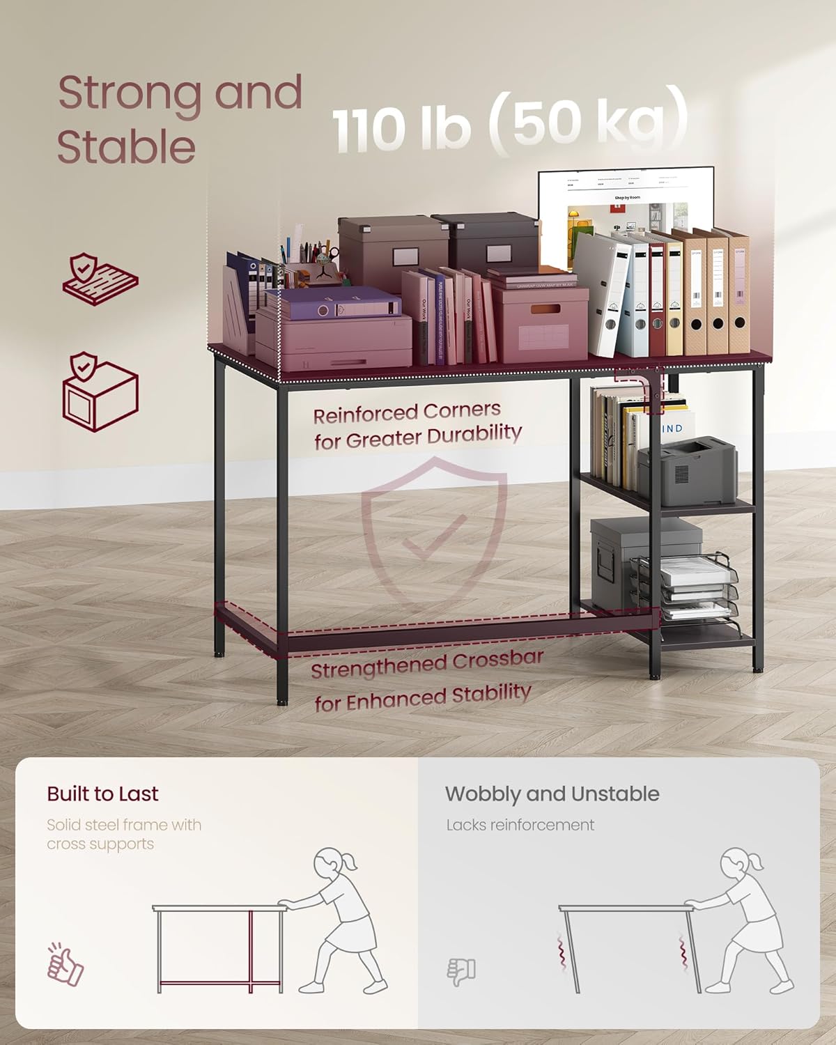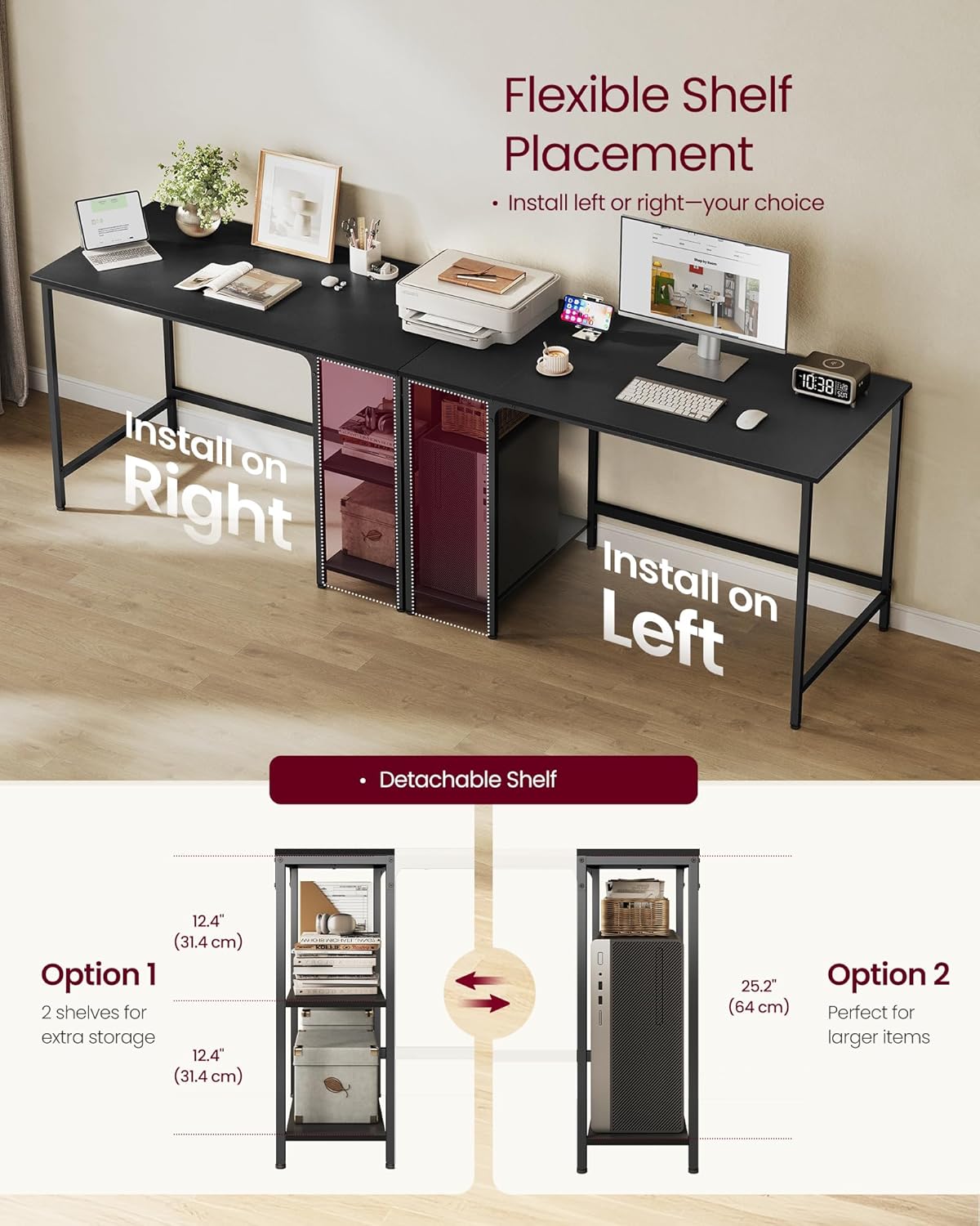 Descriere VASAGLE Birou calculator raft lateral reglabil,